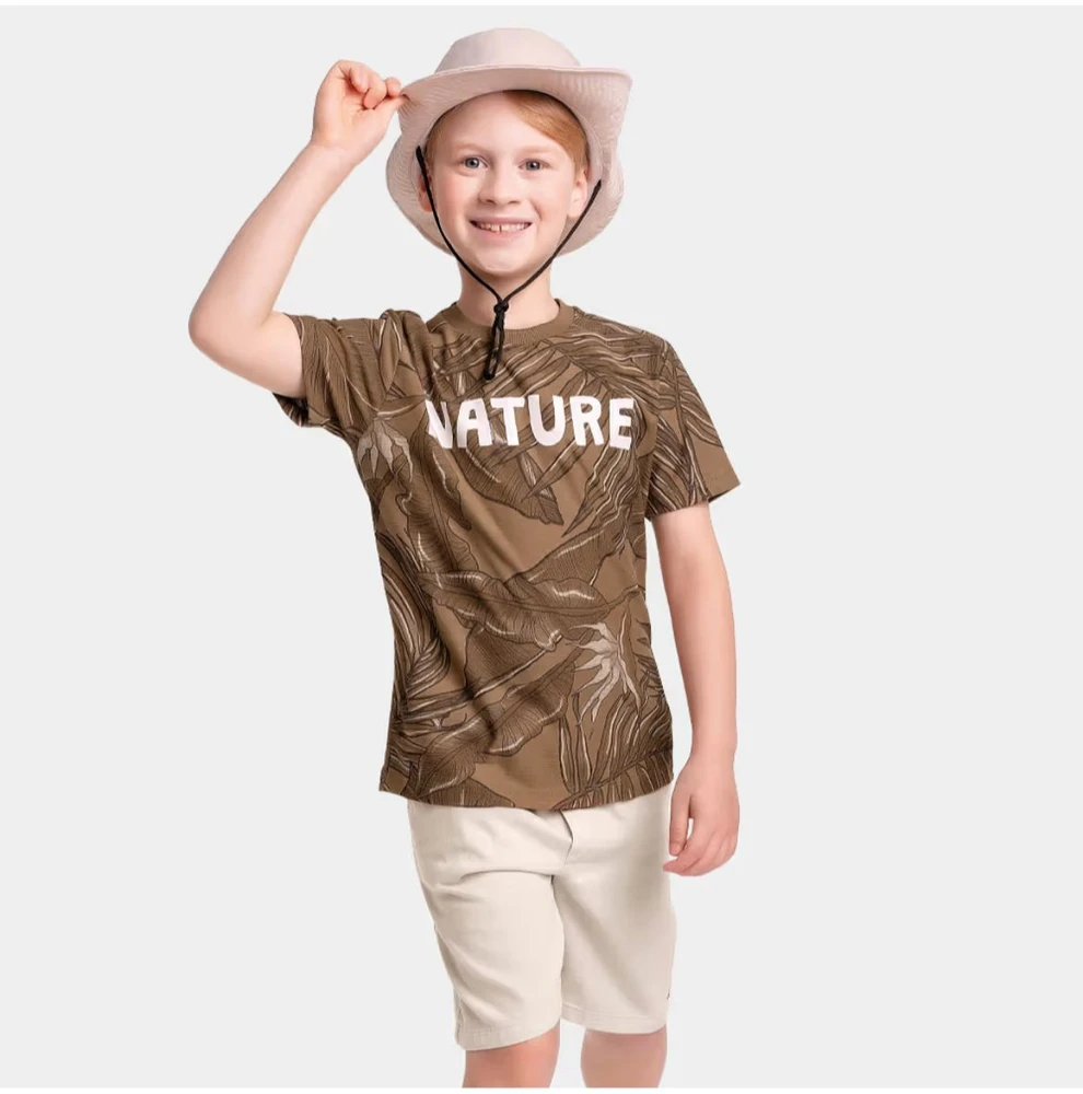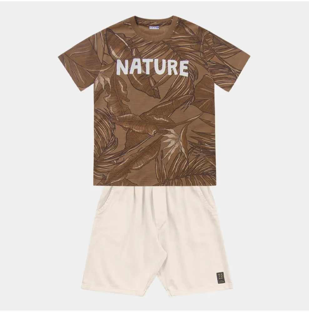 Conjunto infantil Fakini camiseta canela e bermuda bege para crianças tamanho 2, perfeito para o dia a dia com estilo e conforto. A camiseta canela com estampa nature traz um design moderno e conecta seu filho ao ar livre, enquanto a bermuda bege clara alia praticidade e leveza. Feito com tecido de alta qualidade, o conjunto garante toque macio e durabilidade, ideal para aventuras e brincadeiras.