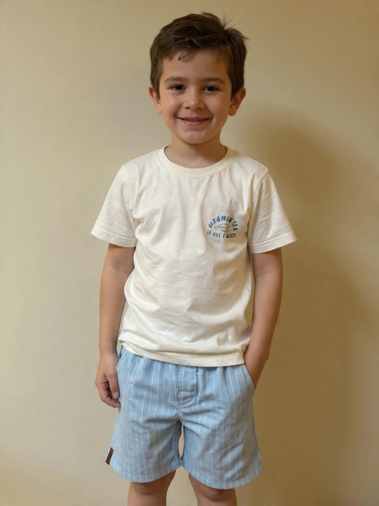 Conjunto Fakini camiseta bermuda tamanho 3: conforto e estilo para os pequenos exploradores. Feito com tecido macio e leve, este conjunto é perfeito para o dia a dia das crianças, garantindo liberdade de movimentos e frescor mesmo nos dias mais quentes. A camiseta em tom neutro traz um toque moderno com estampa discreta, enquanto a bermuda listrada em azul claro adiciona charme e versatilidade ao look. Ideal para passeios, brincadeiras e ocasiões casuais, o conjunto combina qualidade e design pensado para o bem-estar infantil.