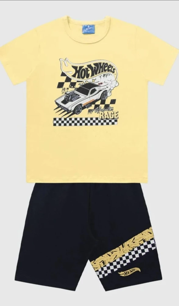 Conjunto Fakini Hot Wheels tamanho 4: conforto e estilo para os pequenos fãs de velocidade. Com camiseta amarela estampada com um carro Hot Wheels em alta definição, esse conjunto une diversão e personalidade. A bermuda preta, com detalhes que remetem ao universo das corridas, completa o look perfeito para o dia a dia ou momentos de lazer.