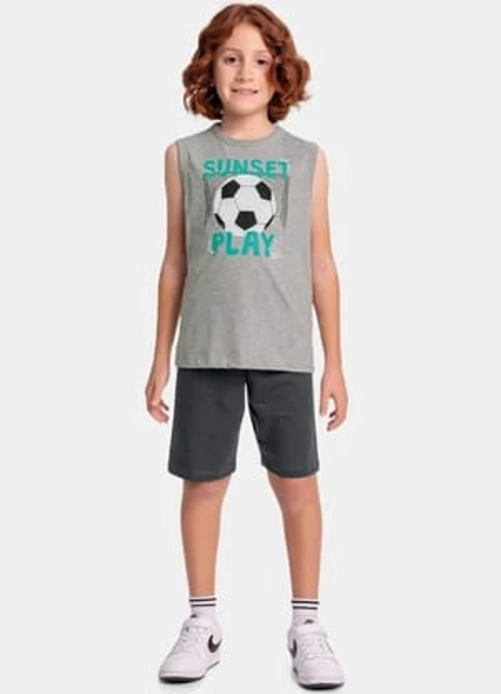 Pensado para o dia a dia ativo das crianças, este conjunto Fakini une praticidade e design moderno. A regata, confeccionada em tecido leve e respirável, garante frescor mesmo nos momentos de maior movimento, enquanto o shorts proporciona liberdade total de movimento, ideal para brincadeiras ao ar livre.