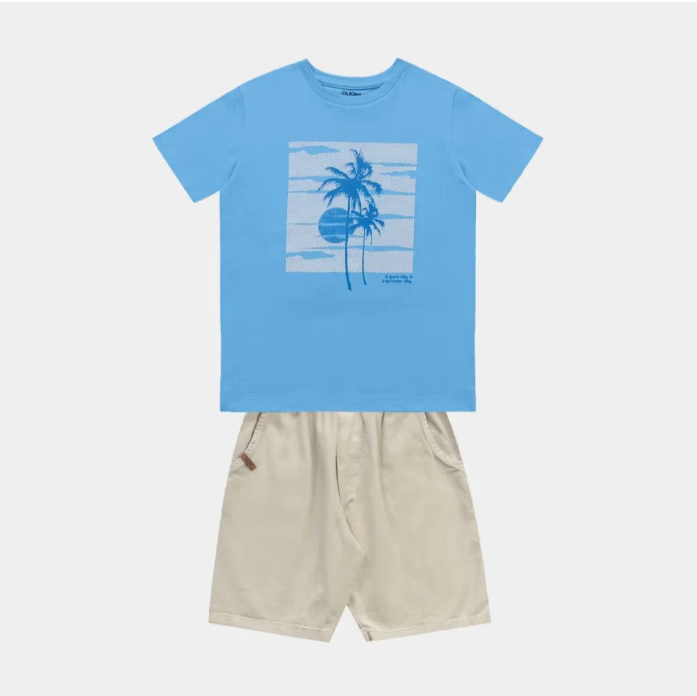 Conjunto infantil com camiseta bege estampada e bermuda preto, ideal para momentos de lazer e diversão. Desenvolvido em tecido leve e confortável, perfeito para o dia a dia ativo das crianças. A camiseta apresenta estampa exclusiva com toque moderno, enquanto a bermuda oferece caimento solto e bolsos funcionais para praticidade. Um look versátil que une estilo e praticidade, resistente para acompanhar toda energia dos pequenos. Escolha o tamanho 4 para garantir o ajuste perfeito e liberdade de movimento. Produto ideal para usar em passeios, praia e brincadeiras ao ar livre.
