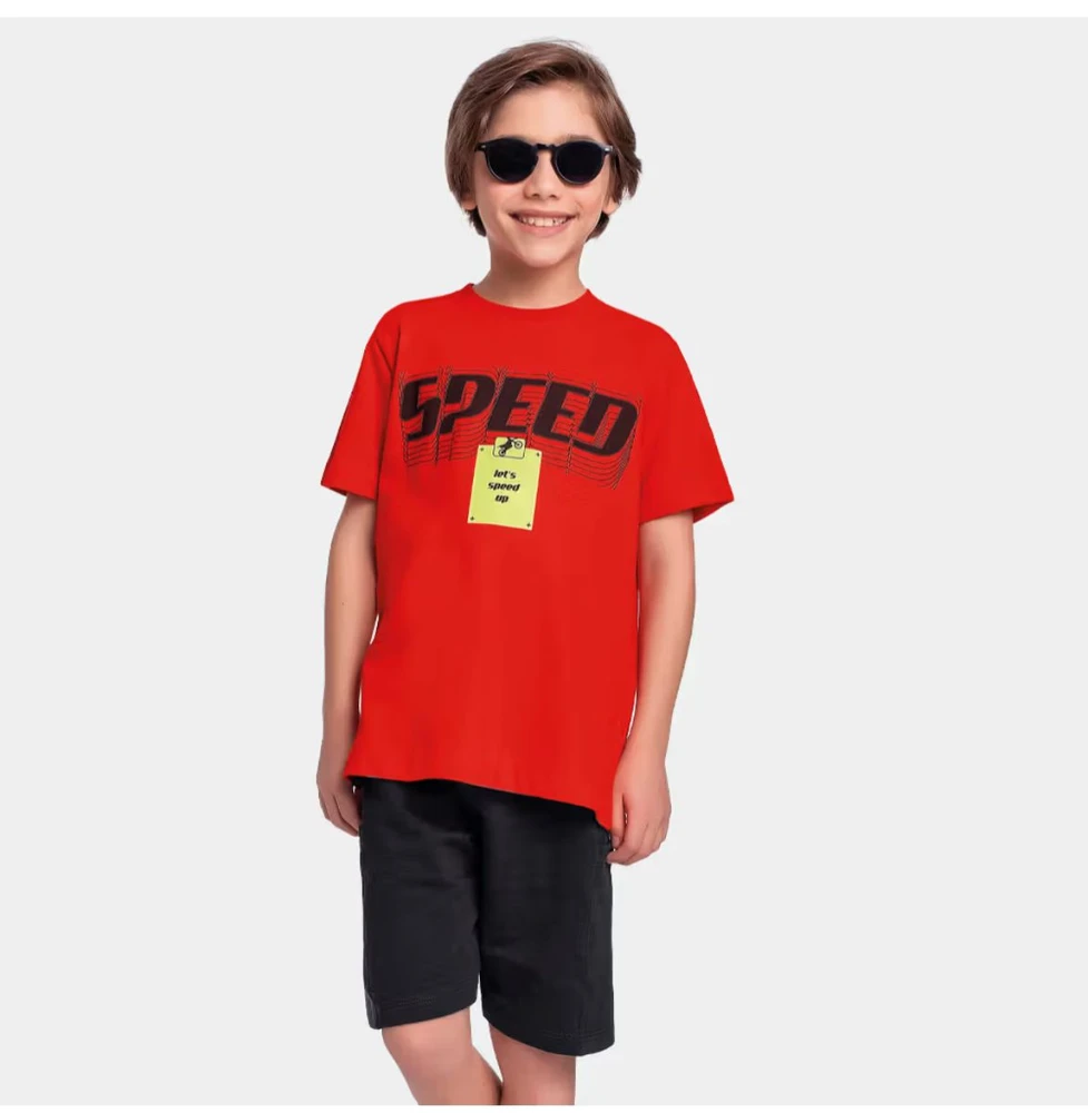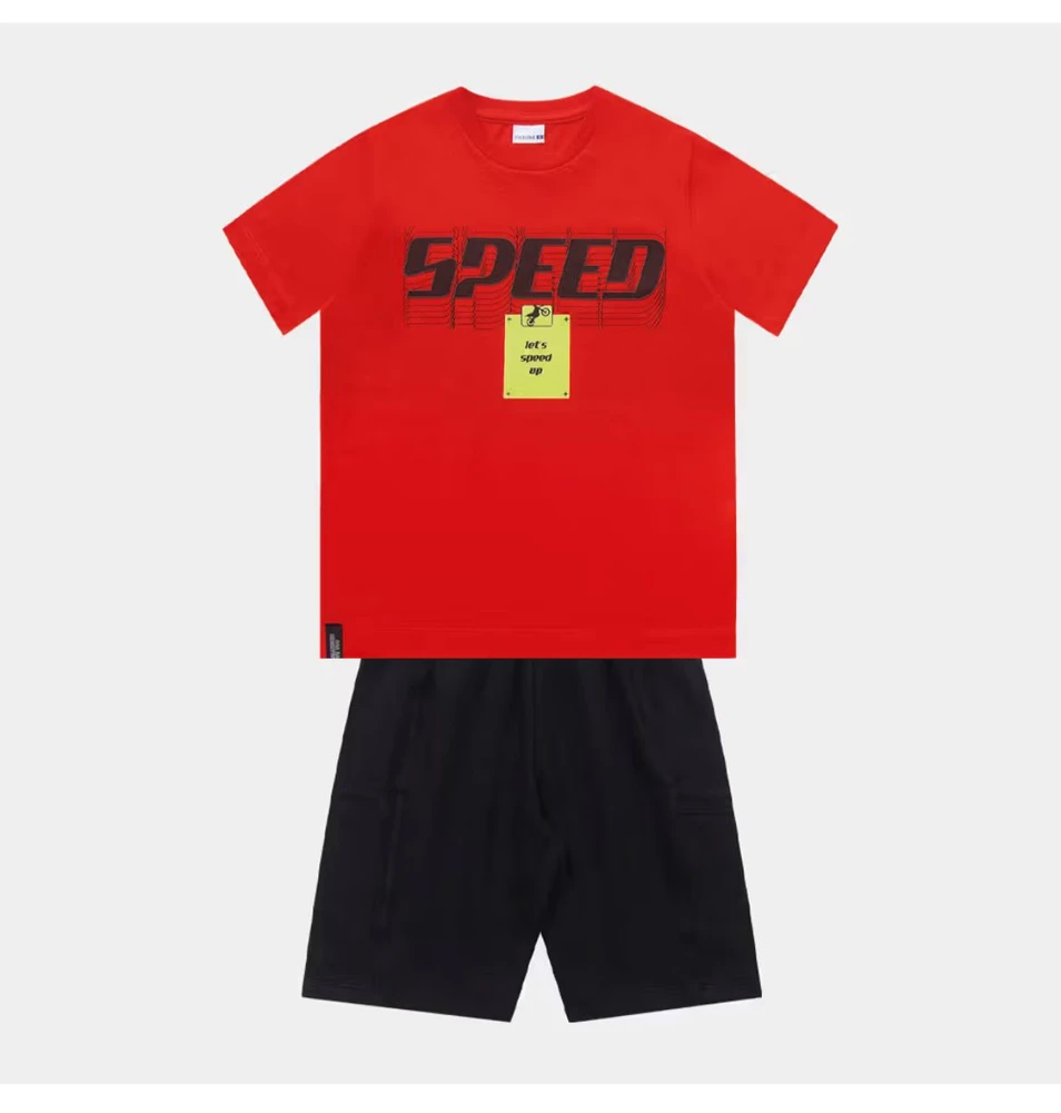 Apresentamos o Conjunto Fakini tamanho 4, perfeito para crianças cheias de energia e estilo. Composto por camiseta vermelha vibrante com estampa "Speed" que inspira movimento e atitude, e bermuda preta confortável, este conjunto une praticidade e design moderno para o dia a dia das crianças.