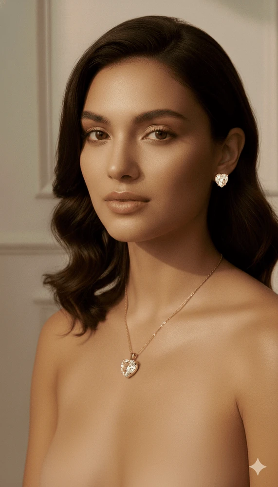 O Conjunto Feminino Clarissa Colar e Brincos com Pingente em Coração Lapidado é uma peça que une romantismo, sofisticação e delicadeza em um design atemporal. Desenvolvido para mulheres que valorizam acessórios elegantes e versáteis, o conjunto destaca-se pelo formato de coração com lapidação precisa, que proporciona brilho intenso e acabamento refinado.
