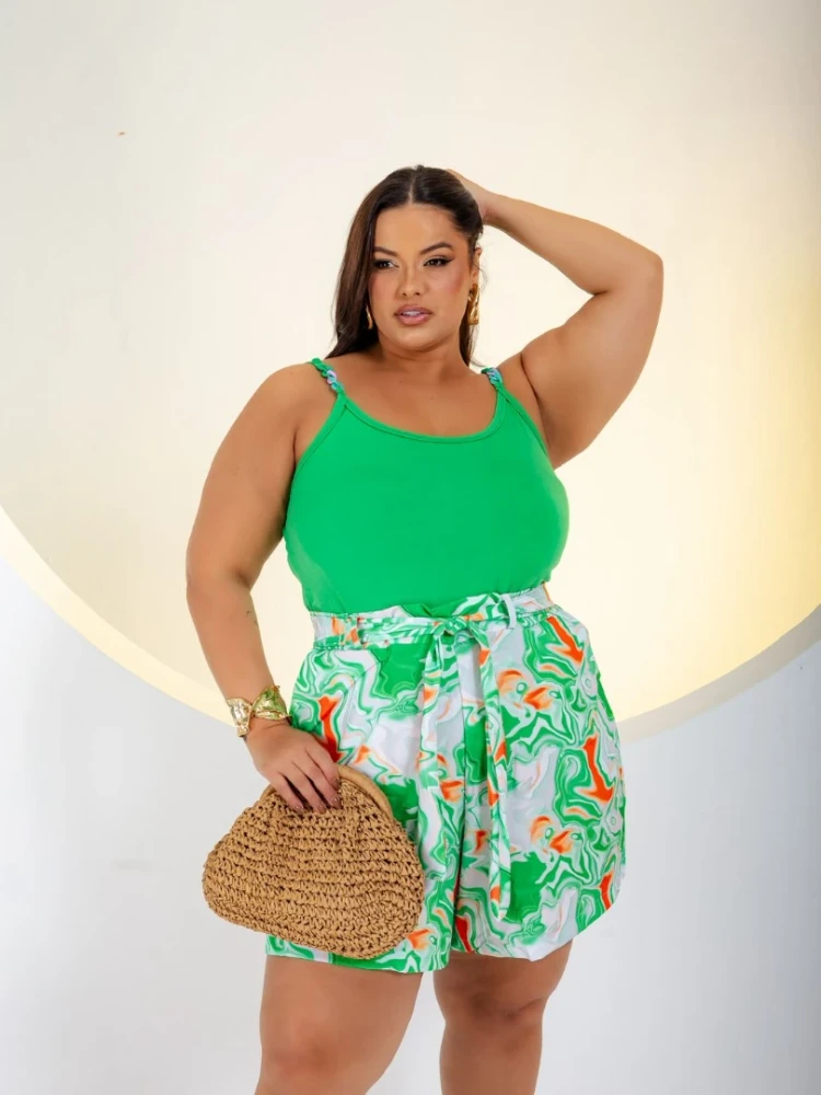Conjunto Feminino Plus Size Verde Tropical