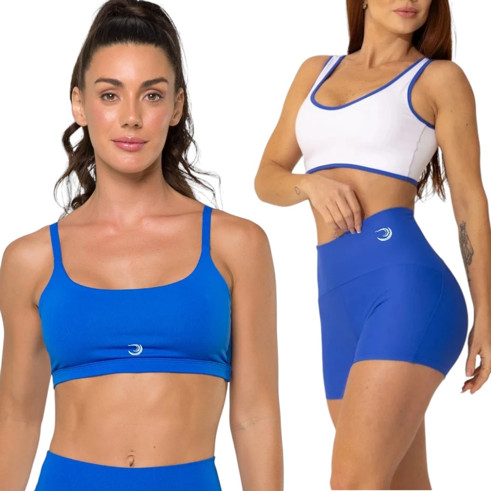 Conjunto Feminino Top Costas Nua + Shorts Curto Poliamida Summer Pro AZUL BIC