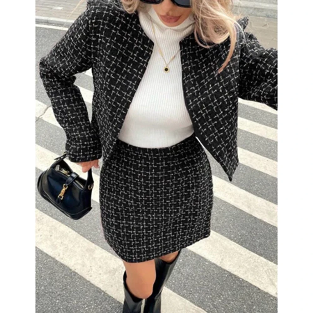 - Itens inclusos: 01 Casaco e 01 Saia.