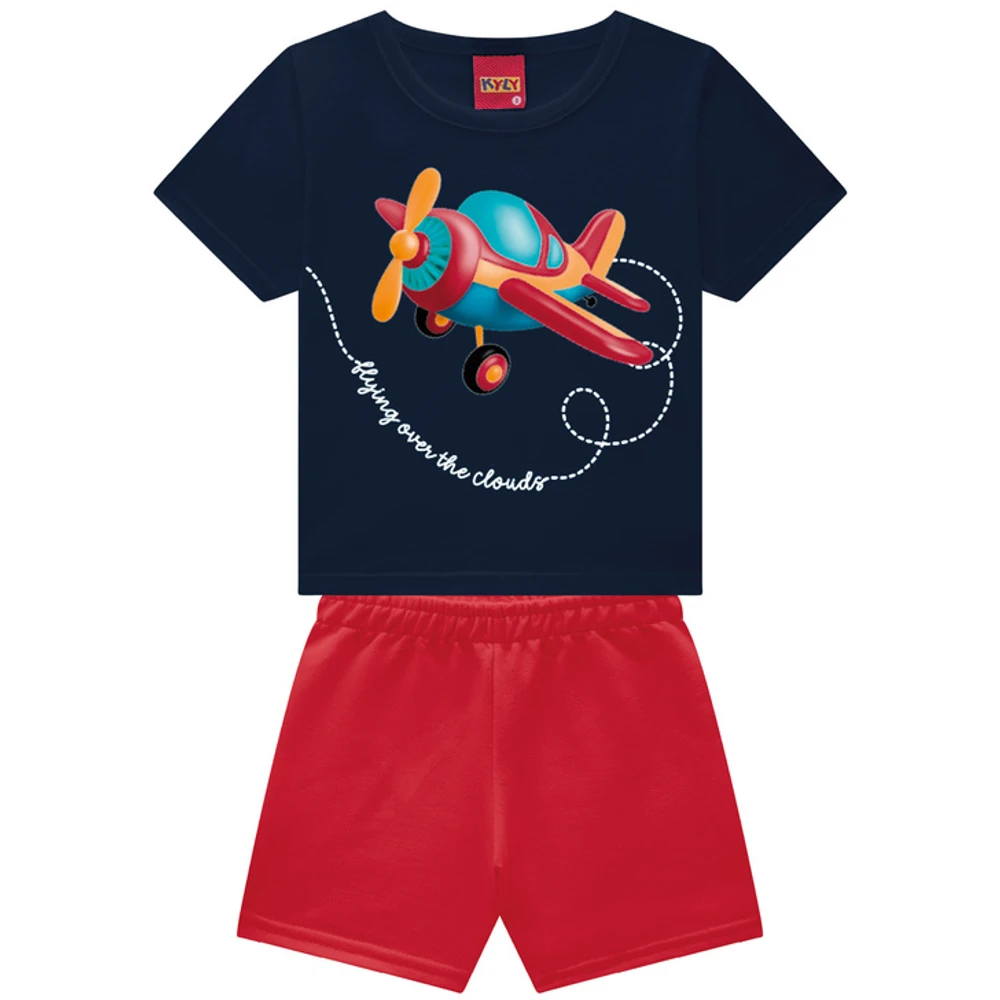 Conjunto Infantil Kyly: conforto e estilo para crianças cheias de energia. A camiseta manga curta azul marinho, confeccionada em algodão macio, garante toque suave e alta respirabilidade, ideal para o dia a dia das crianças. A estampa colorida de avião traz diversão e criatividade, estimulando a imaginação. A bermuda vermelha em moletom oferece liberdade de movimento e ajuste perfeito com cós elástico, proporcionando praticidade e conforto em todas as brincadeiras.