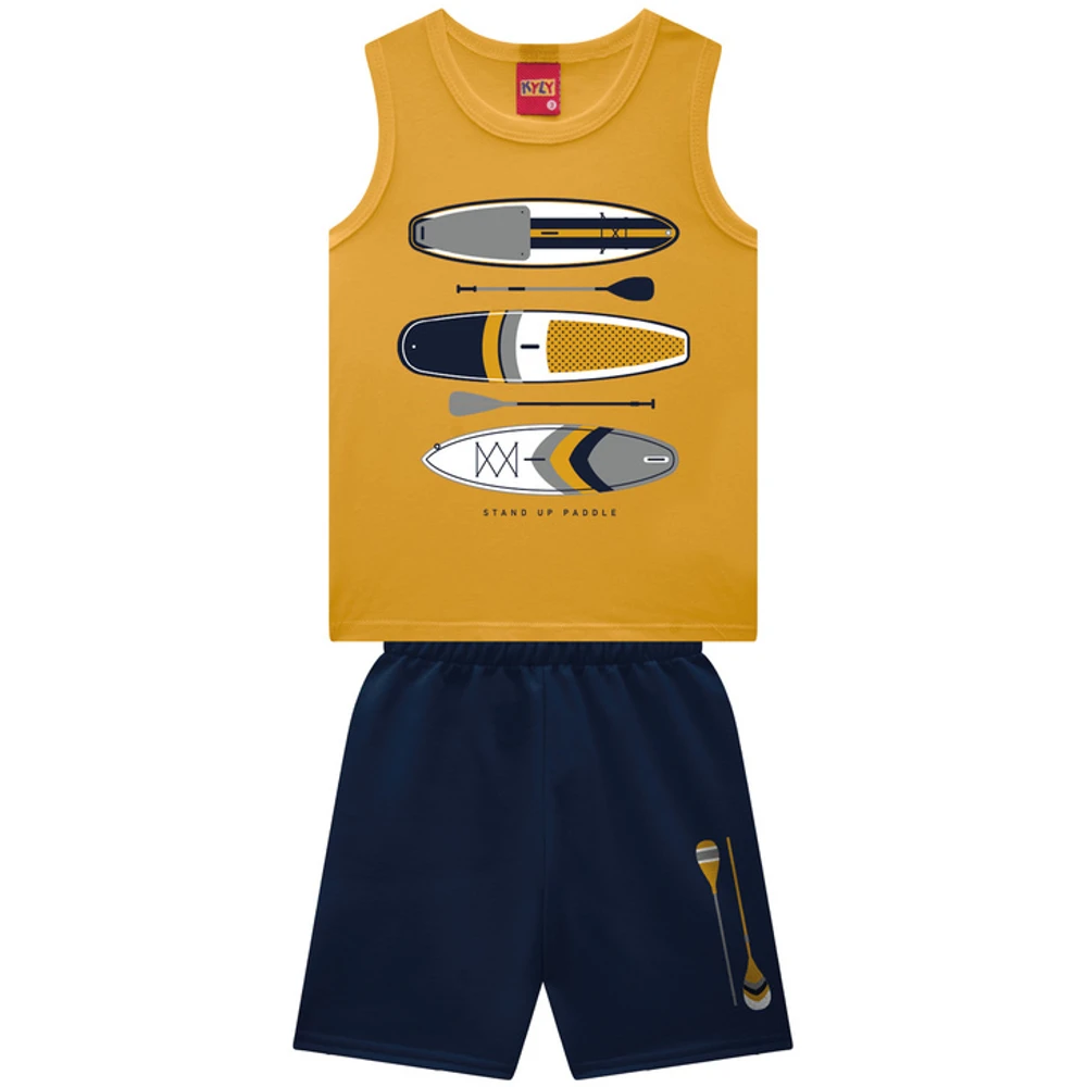Garanta conforto e estilo para seu filho com o conjunto infantil Kyly, ideal para os dias de lazer e atividades ao ar livre. A camiseta regata amarelo salted, feita em meia malha, oferece toque macio e alta respirabilidade, mantendo a pele fresca e seca. A bermuda em moletom azul marinho, com estampa discreta de remos, complementa o visual com conforto e liberdade de movimentos.