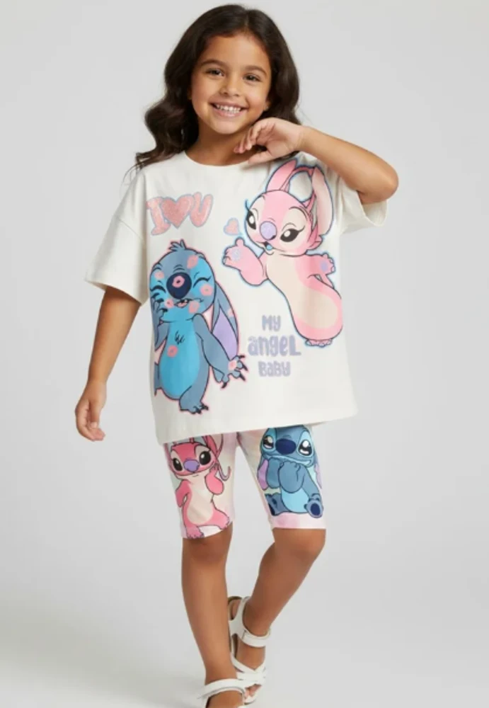 Conjunto Infantil Feminino Estampa Stitch Oversized Off White: a escolha perfeita para garantir conforto e estilo no dia a dia das pequenas. Com modelagem oversized, esta peça proporciona liberdade de movimento e um caimento moderno, ideal para brincar e explorar com leveza. A estampa exclusiva da turma Stitch, em cores vibrantes sobre o fundo off white, traz um toque divertido e encantador que conquista meninas apaixonadas pelo personagem. Produzido em tecido macio e resistente, é perfeito para todas as estações, garantindo durabilidade e facilidade na lavagem.