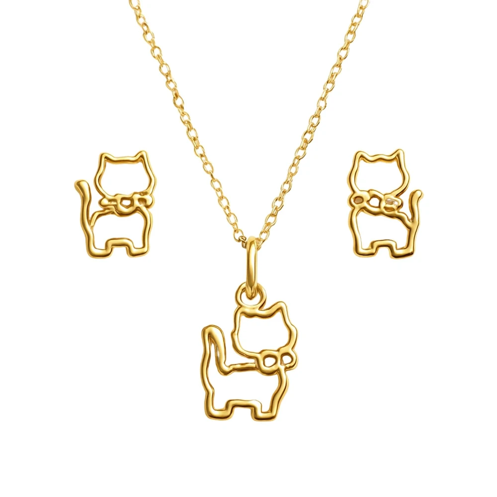 Conjunto Infantil Gatinho - Banhado em ouro 18k