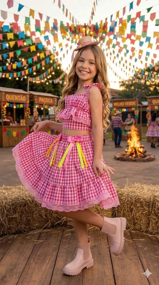 Confeccionado em tecido misto possui forro em poliéster e algodão para não incomodar a criança e proporcionando um caimento incrível e sofisticado, possui gola redonda, comprimento médio, mangas curtas, possui elástico na cintura para melhor ajuste e blusinha com elástico nas costas para ajustar a parte posterior do conjunto completando o look dos sonhos!