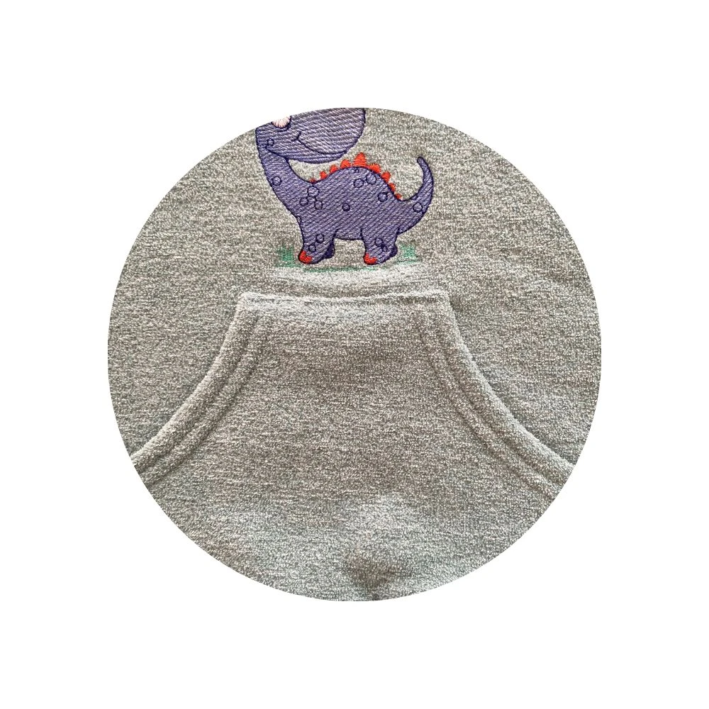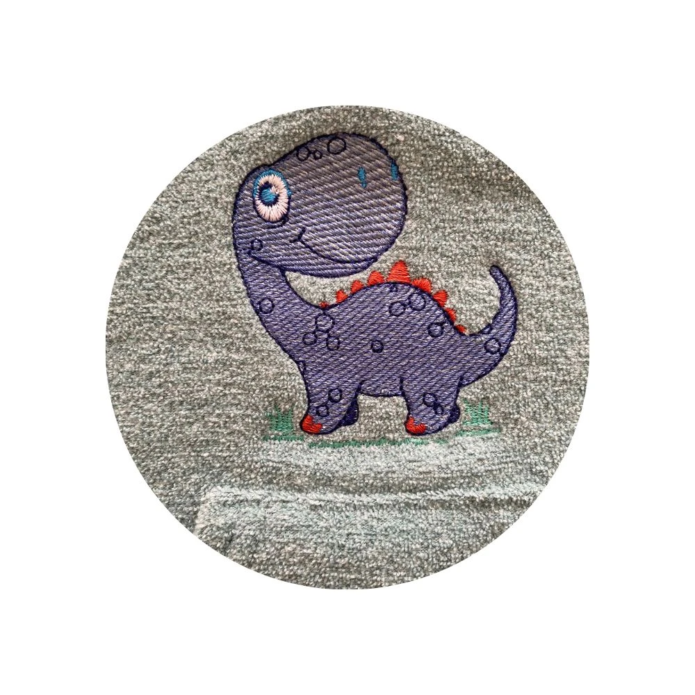 O conjunto longo soft brush a blusa é com bordado de dinossauro