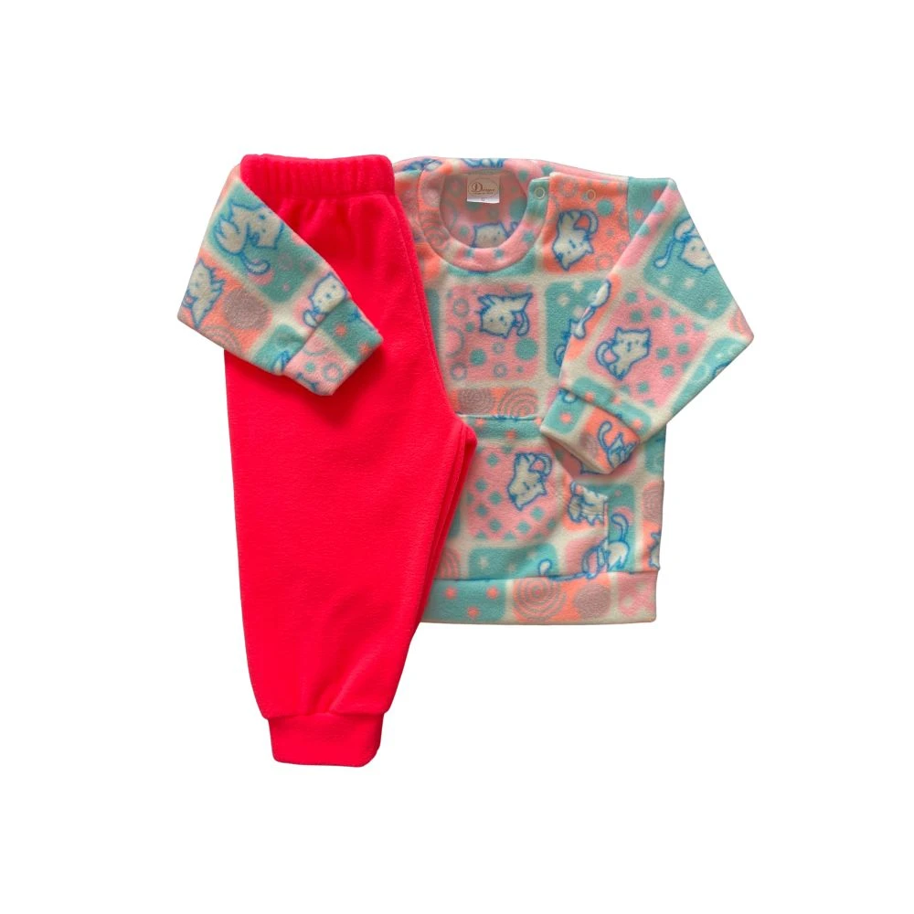 Conjunto longo para bebê soft estampa gatinhos Rosa Neon