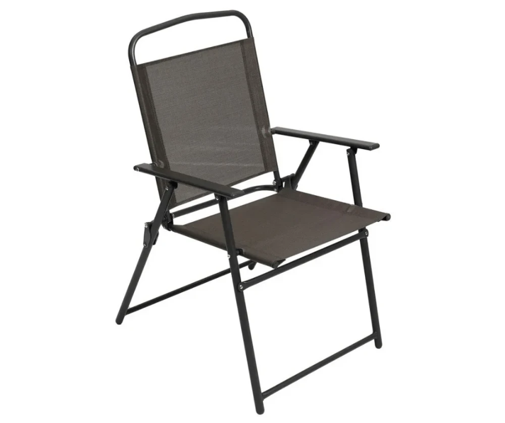 Composição das cadeiras: Encosto de textilene e estrutura de aço