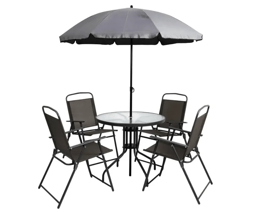Com um toque de elegância e praticidade, este conjunto adicionará charme à sua área de lazer. Aproveite o melhor do ar livre com o Conjunto Marrom para Jardim Mesa Tampo de Vidro, Cadeiras e Ombrelone Kala.