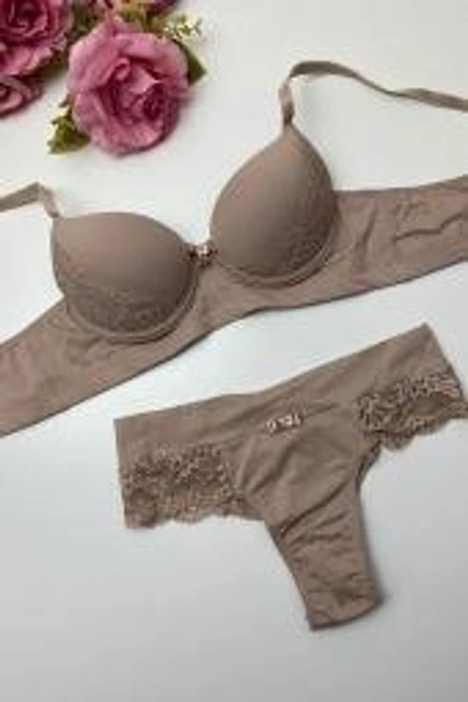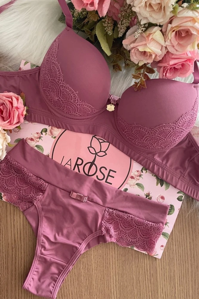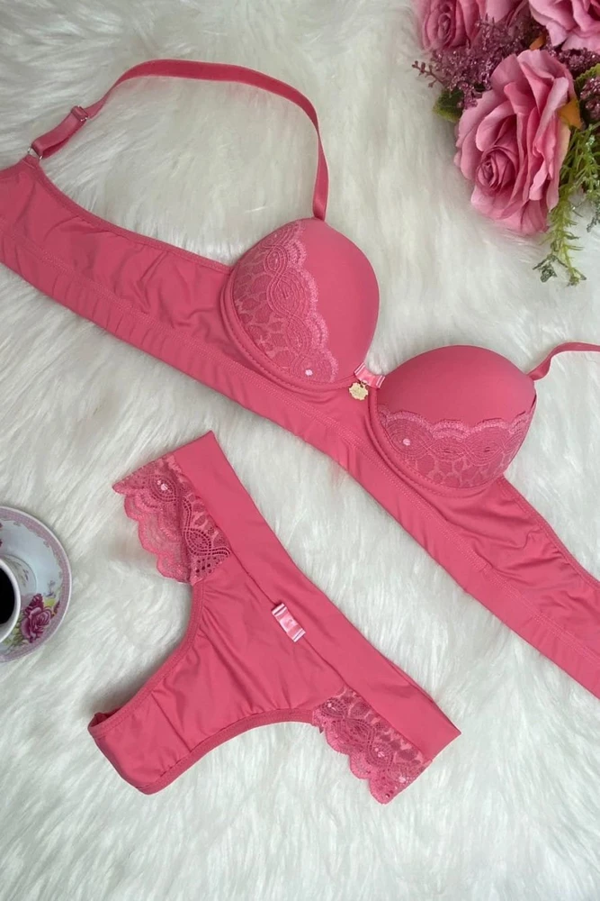 Conjunto de Renda e Microfibra com Bojo.Conjunto super confortável, com um design moderno e com detalhe em renda.Sutiã possui bojo e aro para maior conforto e sustentação.Calcinha cós duplo com detalhes em renda na lateral e fio duplo.Resultados- Acomoda perfeitamente os seios.- Traz extremo conforto.- Valoriza o caimento do look.Com estes resultados você vai se sentir mais bonita e confiante, melhorando sua autoestima e bem-estar. Características- Com bojo e aro.- Fecho com duas regulagens- Alças com regulagens Sugestão de Uso- Dia a dia- Festas- Trabalho Composição85% poliamida no mínimoForro em algodãoOferece respirabilidade para a pele sem causar odor ou vergões no corpo. Cuidados com o Produto1. O conjunto deve ser usado no tamanho correto para vestir perfeitamente e não estragar o produto.2. Não lavar na máquina, recomendamos lavar a mão com sabão neutro e secar a sombra.