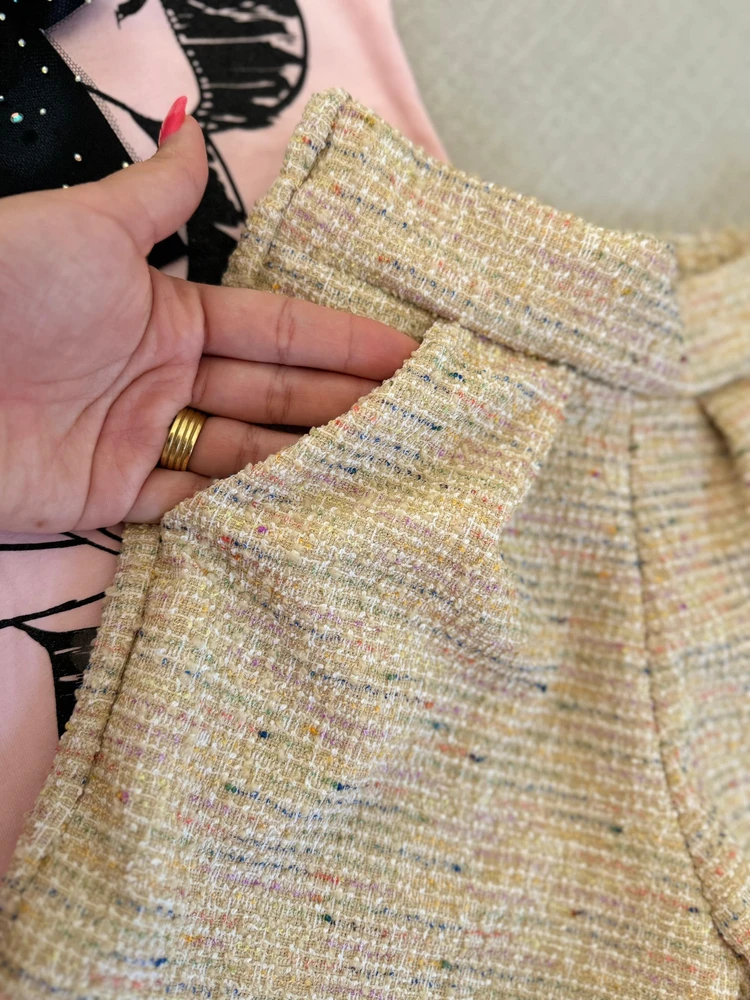 Já o Short é uma verdadeira graça! Com elástico na cintura e bolsinhos laterais, ele é super confortável e estiloso. Em um tecido com elastano ele também trás um leve colorido para deixar este conjunto ainda mais charmoso.