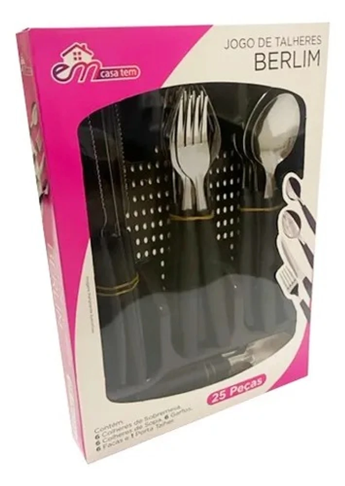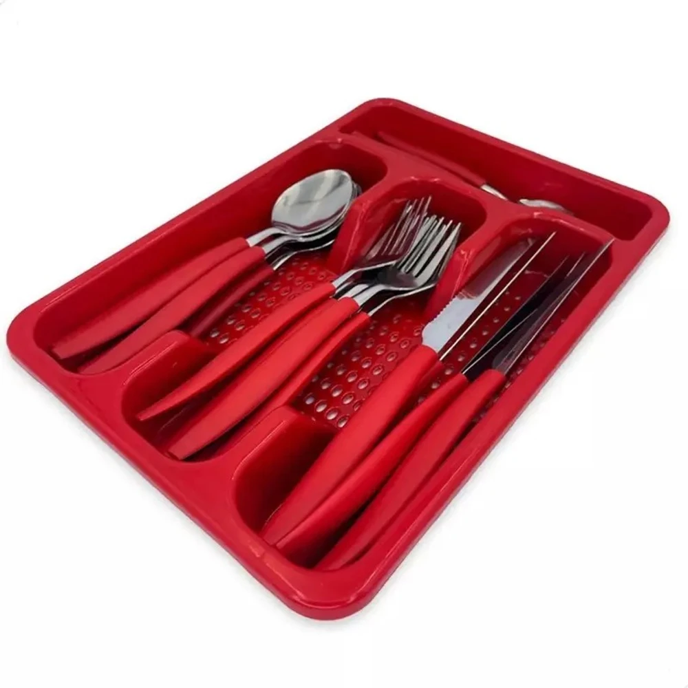 Jogo De Talheres Inox Com 24 Peças + Suporte Gaveteiro