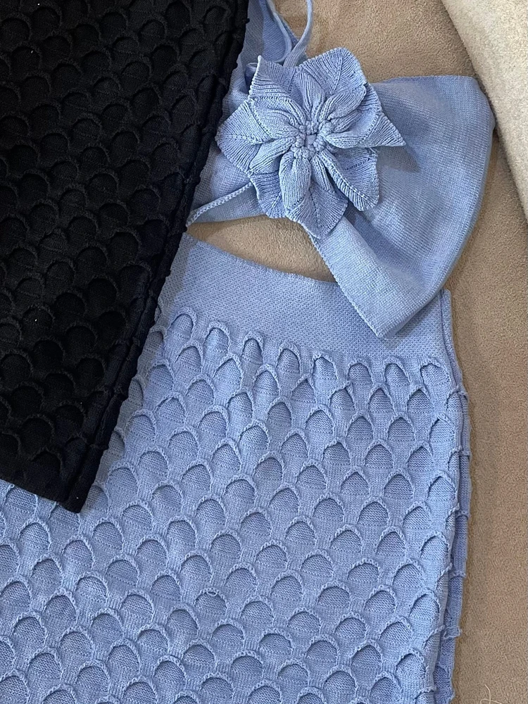 Conjunto Tricot Cropped com Flor e Saia: o look perfeito para arrasar!