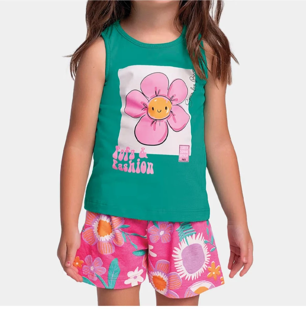 Conjunto infantil Fakini regata e shorts tamanho 2, que une conforto e estilo em um look vibrante e cheio de personalidade. A regata verde apresenta estampa frontal alegre, combinando com o shorts rosa estampado com flores coloridas que trazem charme e energia. Tecido macio e respirável garante liberdade para as brincadeiras, ideal para manter a criança fresca e confortável no dia a dia. Um conjunto pensado para estimular a criatividade e o movimento com muito estilo.