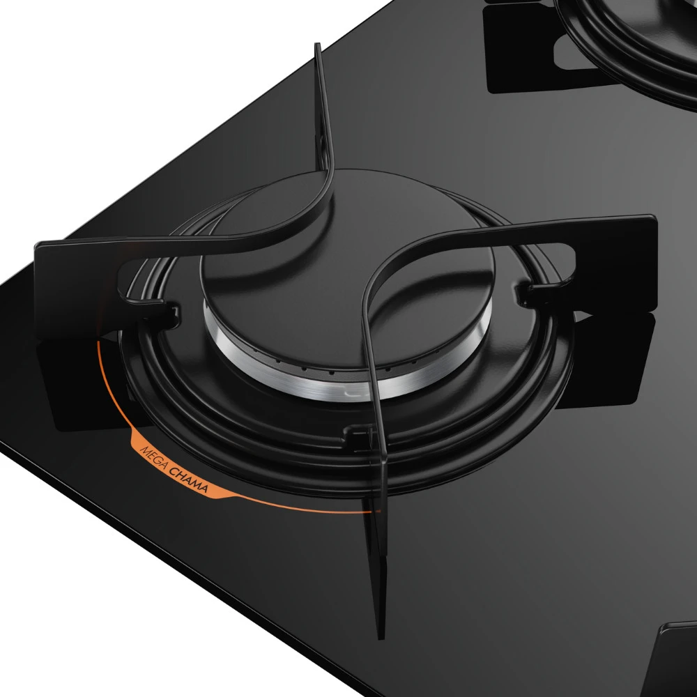 Mesa de vidro temperado Ultra resistente e ainda facilita a limpeza. Queimadores potentes para cozinhar com mais eficiência. Grades de aço esmaltado com acabamento top e que garante mais firmeza