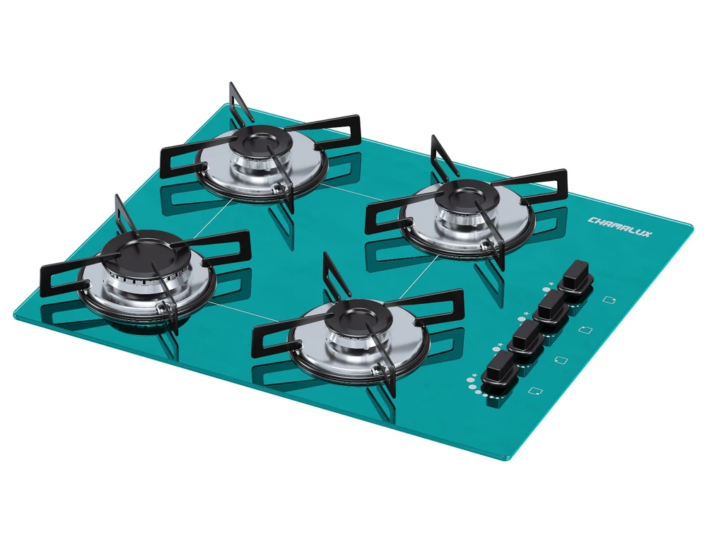COOKTOP CHAMALUX 4 BOCAS ULTRA CHAMA VERDE GAS NATURAL TREMPE CHAPA