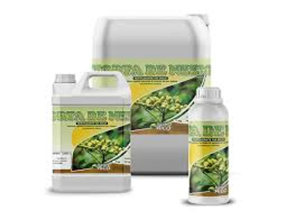 TODOS OS NOSSOS PRODUTOS SÃO AUTÊNTICOS, VENDIDOS EM SUAS EMBALAGENS ORIGINAIS E LACRADOS, POSSUEM REGISTRO NO MAPA E ACOMPANHAM NOTA FISCAL. O Fertilizante Orgânico Torta de Neem - Terra Neem, é um fertilizante indiano, orgânico, classe A registrado pelo Ministério da Agricultura. A Torta de Neem é um fertilizante natural, resultante da extração do óleo dos frutos do Neem, ou seja, é o bagaço das sementes triturado e moído. Feito 100% da amêndoa (Kernel Cake), sendo 100% natural. A Torta de Neem - Terra Neem apresenta diversas propriedades medicinais, ou seja, biocontroladoras, com ação antisséptica, cicatrizante e imunoestimulante. Por isso, o Neem é uma matéria-prima muito pesquisada em todo o Mundo para aplicações agrícolas, pecuárias, medicinais e cosméticas. A utilização da Torta de Neem em bovinos, bubalinos, equinos, suínos, ovinos e caprinos controla ectoparasitas como mosca-do-chifre, berne, carrapato, e ainda atua sobre os endoparasitas (vermes internos). Seu uso é muito prático, pode ser adicionado ao sal ou a ração, diminuindo mão-de-obra, custos e proporcionando qualidade no leite, na carne e ovos. O seu princípio ativo (Azadiractina) passa a circular na corrente sanguínea dos animais e os parasitas que se alimentam do sangue desses animais, são controlados. A utilização de Torta de Neem - Terra Neem em aves, controla piolhos, cascudinhos e vermes internos, permitindo uma produção de ovos 100% orgânica. A utilização da Torta de Neem em plantas auxilia no enraizamento, liberando auxina e giberelina, com isso, as raízes serão mais saudáveis e terão maior área de absorção de água e nutrientes, assim o desenvolvimento da planta será muito mais vigoroso. A utilização da Torta de Neem em conjunto com as adubações usuais, irão conferir uma melhora em todo o desenvolvimento da planta. Na fase vegetativa irá promover maior número de brotação de folhas, na fase da floração e frutificação trará maior quantidade e qualidade das flores e dos frutos e o mais importante: suas plantas estarão muito mais saudáveis e protegidas. Sua ação inseticida e nematicida afasta e inibe o crescimento de insetos e nematoides prejudicais das plantas. Ao contrário de inseticidas químicos, os compostos a base de Neem agem no sistema hormonal do inseto, e não sobre o sistema digestivo ou nervoso e, portanto, não leva ao desenvolvimento de resistência nas gerações futuras. Além disso, tem ação fungicida e bactericida. Suas plantas irão ficar livres do ataque de doenças naturalmente. Possui ação preventiva que deixa as plantas resistentes ao ataque de doenças e ação curativa que elimina doenças já existentes no local. O Fertilizante Orgânico Torta De Neem - Terra Neem é Atestado Pela Ecocert  Índia e Ecocert Brasil. Da Índia para o Brasil, os Fertilizantes Orgânico Torta de Neem - Terra Neem são importados pela B&R Brasil Importação e Comércio Ltda. e vendidos no atacado e varejo pela Boutin Campo & Jardim. Vantagens: Ação Fungicida, Inseticida e Nematicida Controle de ectoparasitas Auxilia no enraizamento das plantas Benefícios: Afasta e inibe o crescimento de doenças, insetos e nematoides prejudicais as plantas. Maior qualidade no leite, na carne e ovos, podendo produzi-los de forma orgânica, agregando valor no produto final. As raízes serão mais saudáveis e terão maior área de absorção de água e nutrientes, assim o desenvolvimento da planta será muito mais vigoroso. Modo de uso:  Pré-plantio: Aplicar o produto em forma de pó diretamente ao solo de 2-3 semanas antes do plantio na proporção de 60 g/m2 de canteiro a uma profundidade de 15-20 cm. Pós-plantio - Aplicação sólida: Em plantas de pequeno porte, como hortaliças e ornamentais, aplicar de 10-50 g/planta. Em árvores ou plantas de grande porte, aplicar de 250-500 g/ planta. Misturar ao solo ao redor da planta a uma profundidade de 15-20 cm e molhar abundantemente após a aplicação. Vasos: Pequenos (15 cm de diâmetro): 3 g. Médios (15-25 cm de diâmetro): 5 g. Grandes (maiores que 25 cm de diâmetro): 10 g. Pós-plantio - Aplicação líquida (solução): Diluir 1 kg de Torta de Neem em 10 litros de água, em recipiente plástico. Coar o produto, pois pode haver entupimento dos bicos. Depois de coar, adicionar água nessa solução: para dose curativa, misturar em 40 litros de água. Caso seja dose de manutenção preventiva, misturar em 90 litros de água. Aplicar com o solo úmido, deverá ser irrigado o realizado após chuva, pois a solução deverá descer até as raízes. Rendimento: 10 kg/ha, ou seja, 1 kg para 1.000 m2. A solução deve ser utilizada dentro de 8 horas, para que haja melhor efeito. Realizar 2 aplicações na dosagem de 1 kg de Torta de Neem para 50 litros de água, com intervalo de 20 dias entre elas. A partir da terceira aplicação, utilizar dosagem de manutenção de 1 kg de Torta de Neem para 100 litros de água, uma vez ao mês até o final do ciclo da cultura. Cuidados na diluição: Realizar essa operação no período da tarde porque o produto é fotodegradável (se degrada com a ação da luz). Manter o recipiente em ambiente escuro, tampado, por pelo menos 24 horas. NÍVEIS DE GARANTIA Fertilizante Orgânico Composto Classe A Azadiractina....................1000/1500 PPM Nitrogênio Total ..................................5% Óxido de Potássio ................................3% Carbono Orgânico (C).........................40% pH..........................................................5,2 CTC.....................................271 mmolc/kg Umidade máxima............................... 20% Condutividade à 25 °C............4,51 mS/cm Solubilidade à 20°C................... 32,81 g/L Origem: Índia Cuidados: Conservar em local seco e fresco, protegido de umidade e fontes de calor.