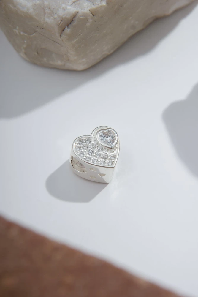 Coração cravejado de cristais e pedra Deixe o amor florescer com o nosso encantador berloque Coração! Inspirado na beleza da paixão, do amor e do carinho.