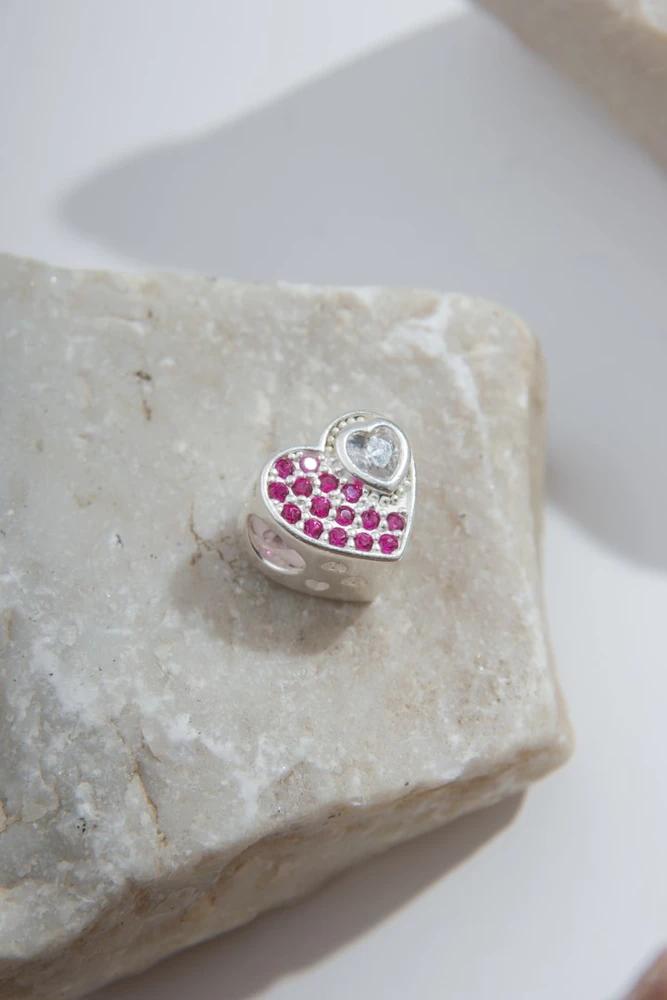 Coração cravejado de zircônias rubi Deixe o amor florescer com o nosso encantador berloque Coração! Inspirado na beleza da paixão, do amor e do carinho.