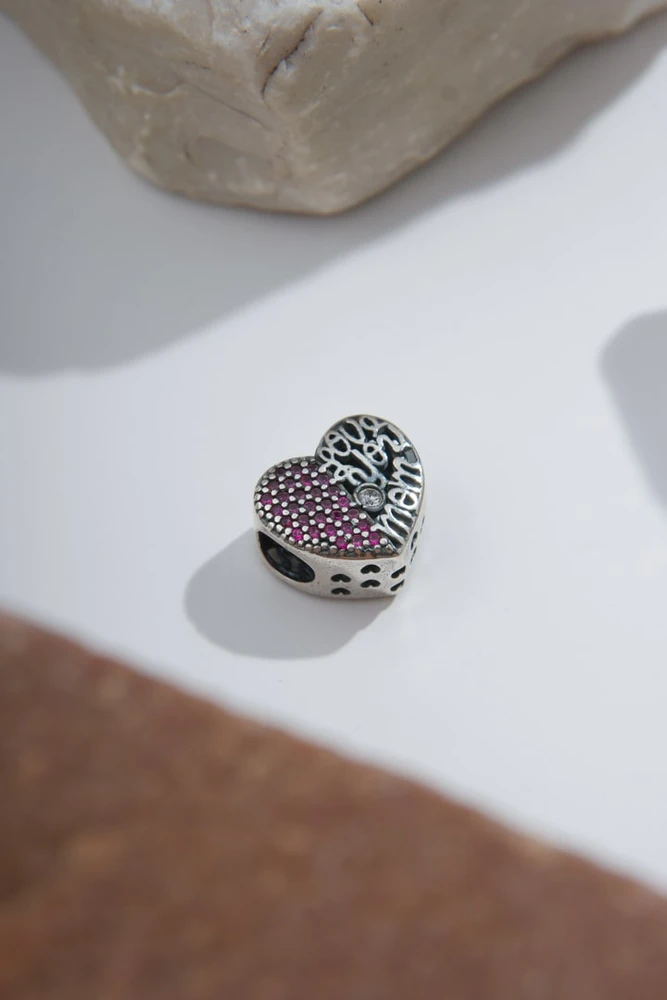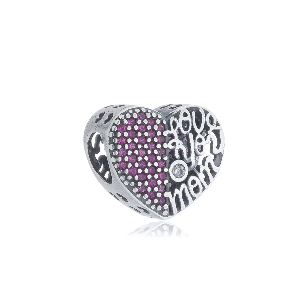 Coração Love You Mom Deixe o amor florescer com o nosso encantador berloque Coração! Inspirado no amor e carinho de todas as Mães, com a frase em inglês "amo você mãe".