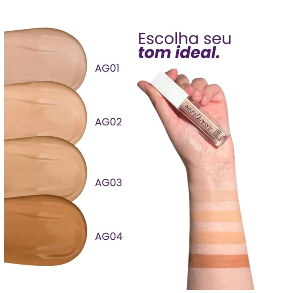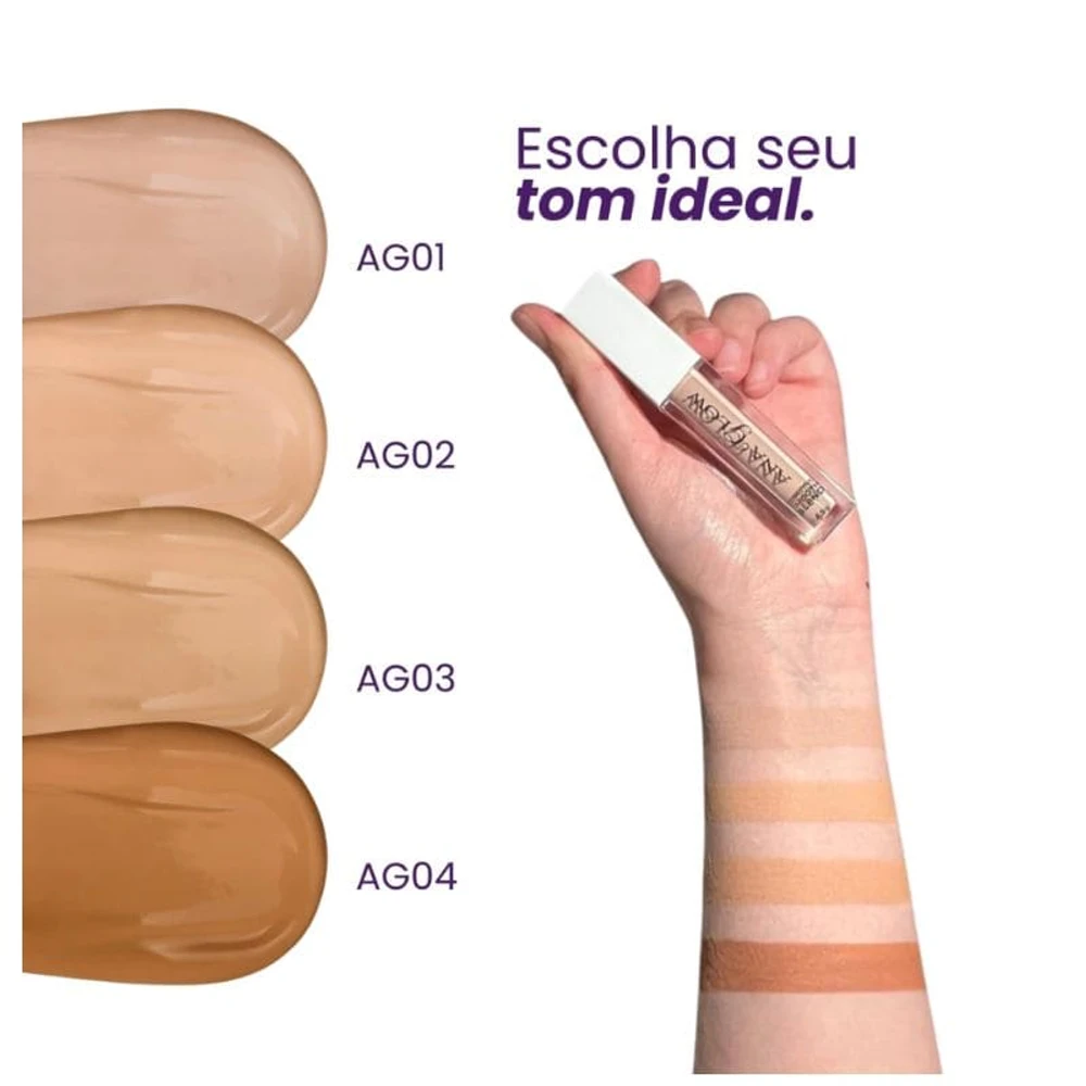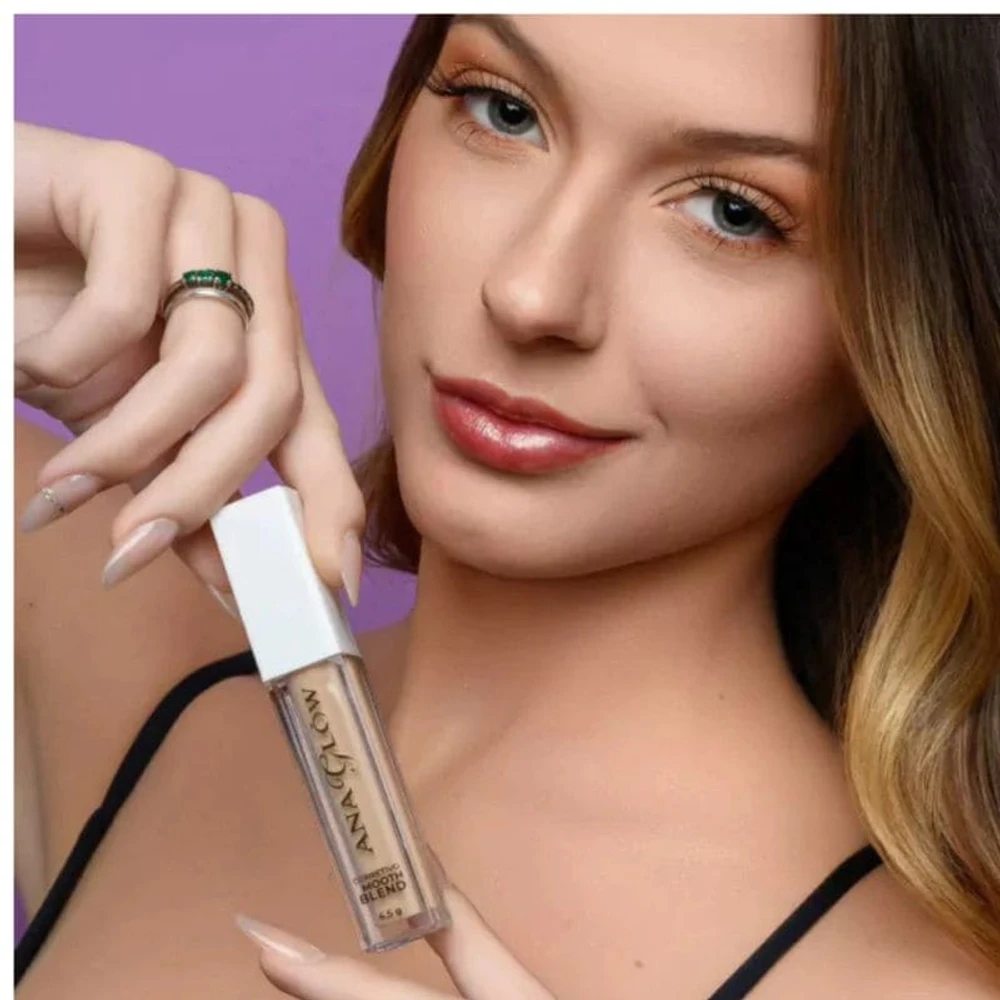 O Corretivo Líquido Smooth Blend Ana Glow oferece alta cobertura com acabamento natural e textura leve, perfeito para disfarçar olheiras, manchas e pequenas imperfeições sem pesar na pele.
