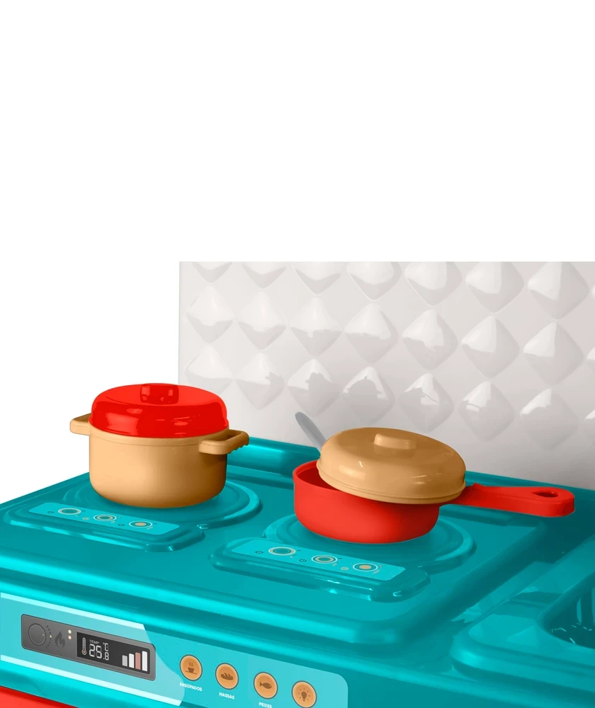 Conteúdo da embalagem: 1 cozinha Big Kitchen, 1 geladeira, 1 micro-ondas, 1 forno, 1 fogão, panelas, utensílios e pratinhos