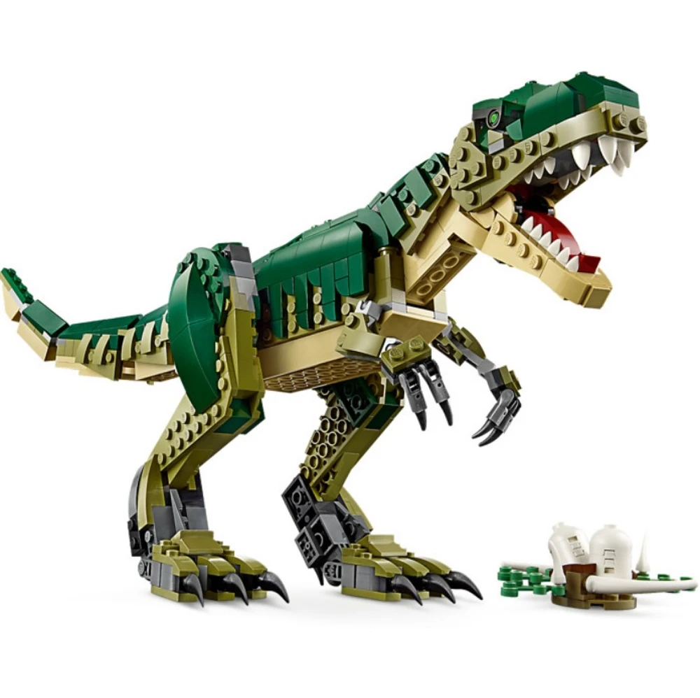 Meninos e meninas de 9 anos ou mais podem viajar de volta no tempo para encenar ações incríveis com este brinquedo de dinossauro T. rex (31151). O brinquedo Tyrannosaurus rex é altamente articulado, então as crianças podem mover sua cabeça, pés, cauda, ??mandíbula, pernas, braços e até dedos e calcanhares, em diferentes poses. O brinquedo T. rex também vem com um ninho contendo 2 pequenos elementos de ovo de dinossauro e juntos eles fazem uma exibição impressionante em uma prateleira ou mesa de cabeceira. Este conjunto de construção de brinquedo de dinossauro LEGO dá às crianças um mundo de possibilidades de brincadeira emocionantes com 3 brinquedos de dinossauro diferentes para construir usando os mesmos tijolos. Eles podem criar um T. rex articulado, reconstruí-lo em um temível triceratops com 3 chifres ou transformá-lo em um pterodáctilo com grandes asas móveis. Os kits de construção de brinquedo LEGO Creator 3 em 1 são ótimos presentes de aniversário ou feriado para crianças com 3 opções para criar em cada caixa. Os conjuntos 3 em 1 oferecem uma variedade de modelos construídos com peças que atraem as maiores paixões das crianças, incluindo veículos legais, animais incríveis e cenas detalhadas da cidade. Contém 626 peças.