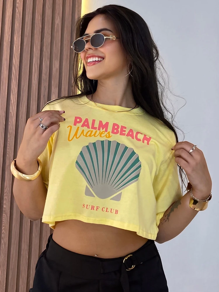 Cropped T-Shirt Estampada Palm Beaach Waves