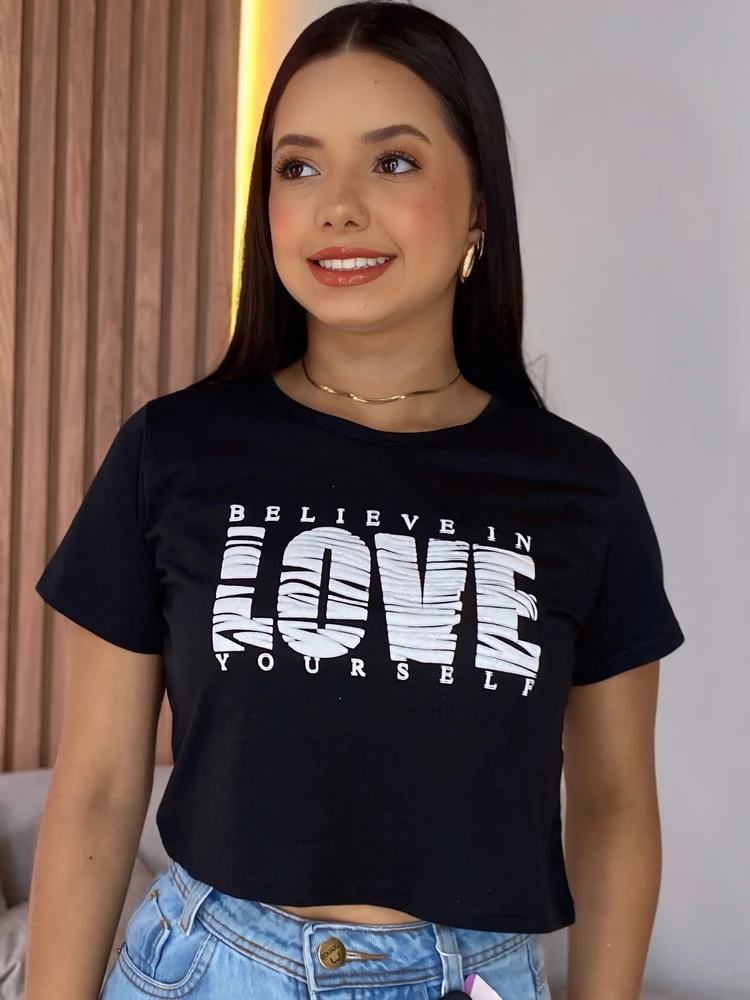Cropped T-Shirt Love é o básico nada básico que faltava no seu guarda-roupa!
