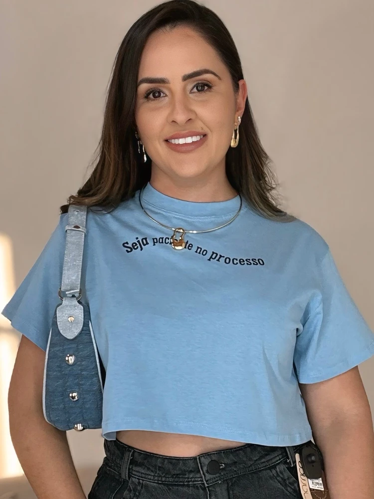 A Cropped T-Shirts Seja Paciente No Processo é versátil e pode ser combinada com diferentes peças, desde shorts e saias até calças e macacões. Além disso, ela é perfeita para ser usada em qualquer estação, podendo ser usada sozinha ou com sobreposições, criando looks únicos e cheios de estilo.