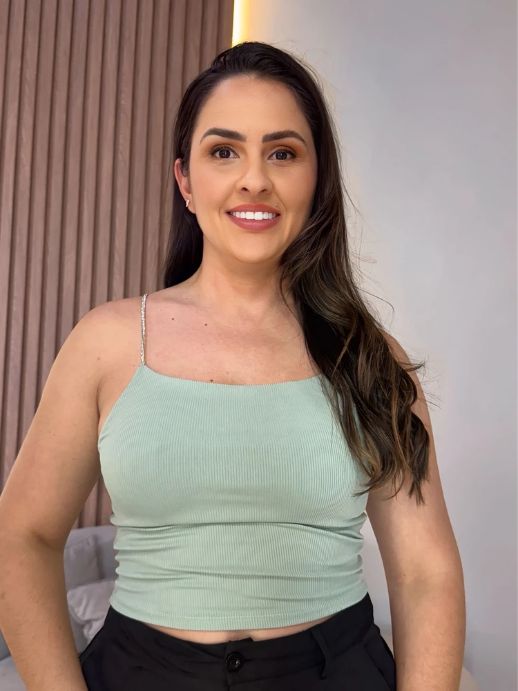 O Cropped Valentina Canelado com Alças de Strass é a escolha ideal para quem deseja unir praticidade, conforto e aquele toque glam que transforma qualquer look. Confeccionado em tecido canelado macio e de ótimo caimento, ele possui modelagem reta, decote discreto e alças finas em strass, que adicionam brilho e sofisticação na medida certa.