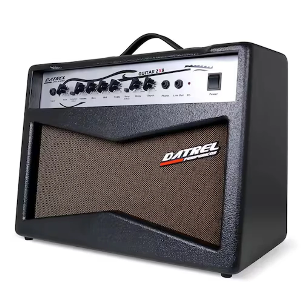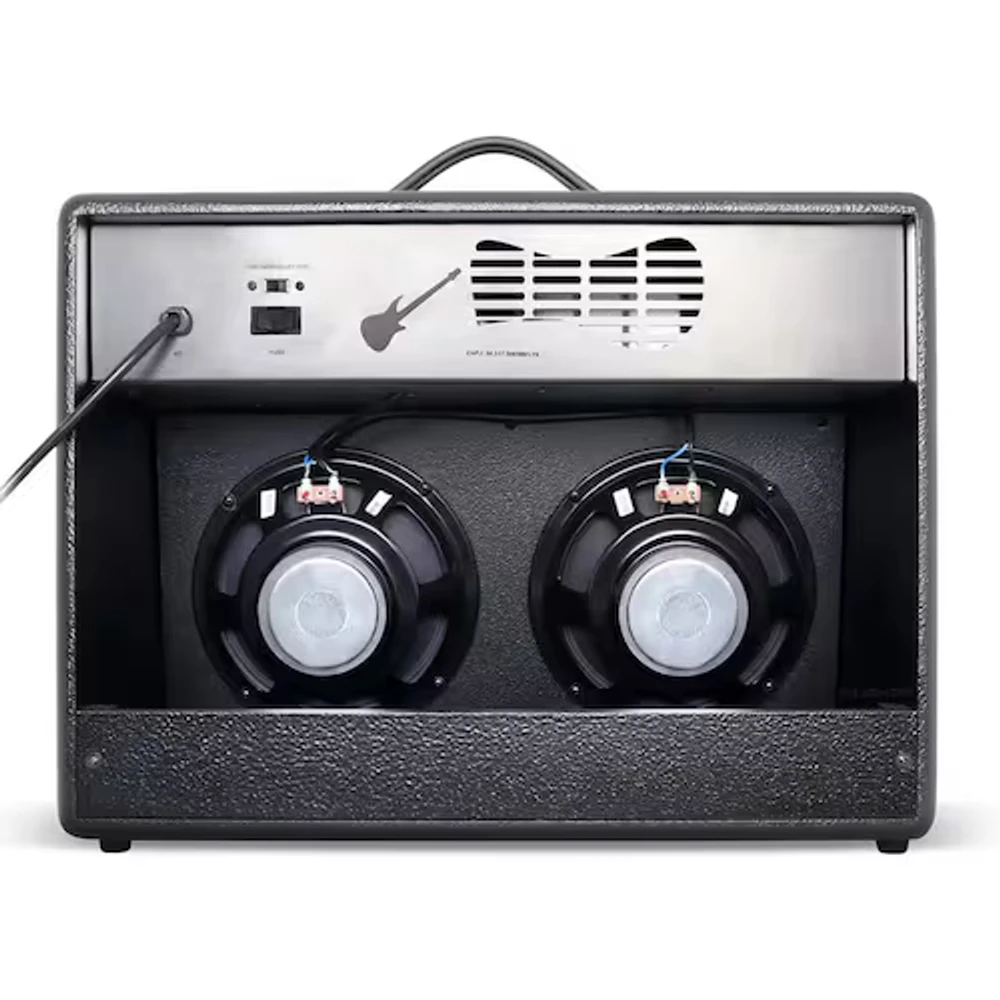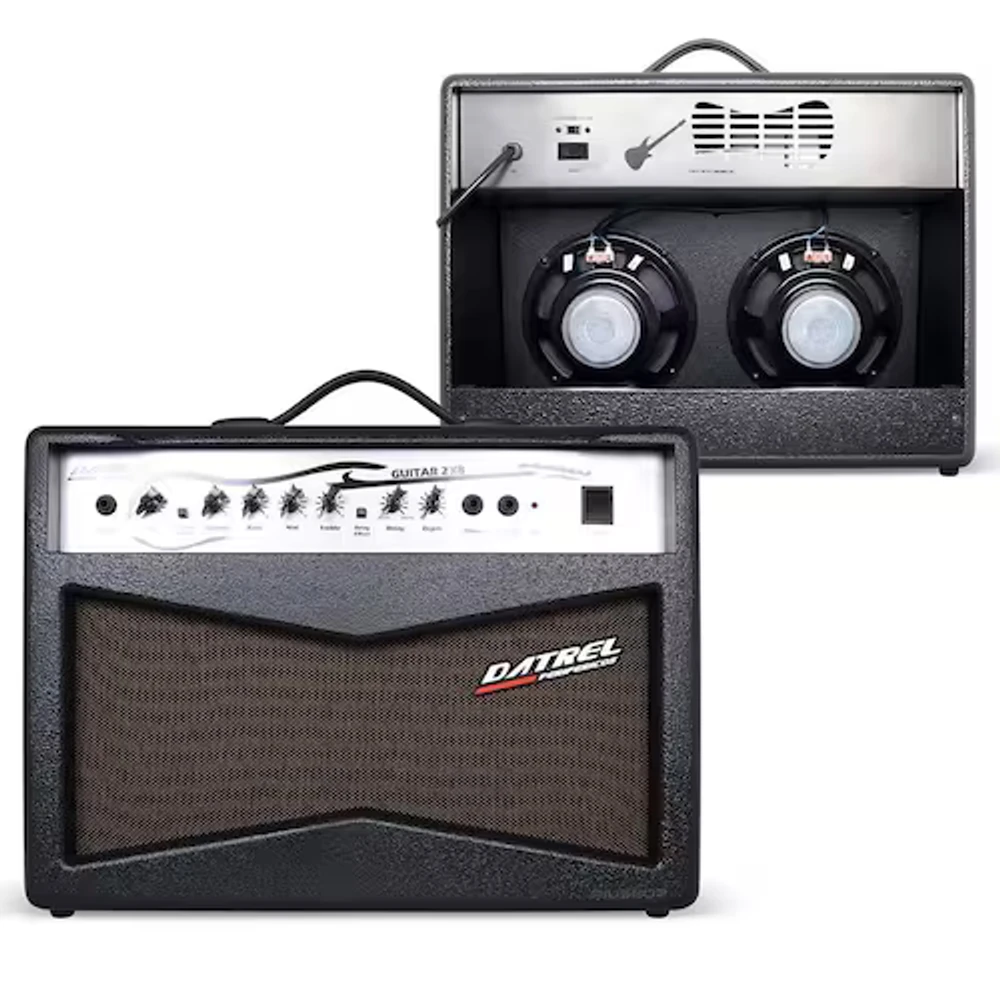Cubo de guitarra de 100W com dois falantes de 8 polegadas (2×8″), configuração de 4 Ohms, oferecendo potência suficiente para ensaios, pequenos palcos, escolas de música ou uso doméstico com volumes altos.