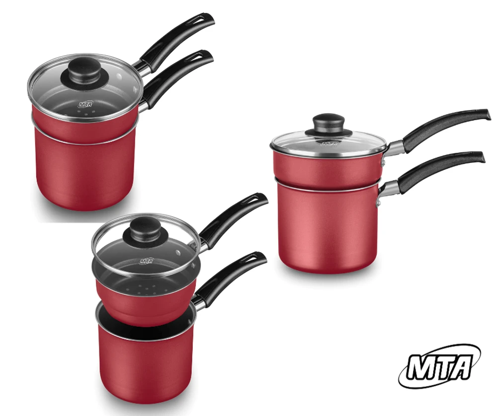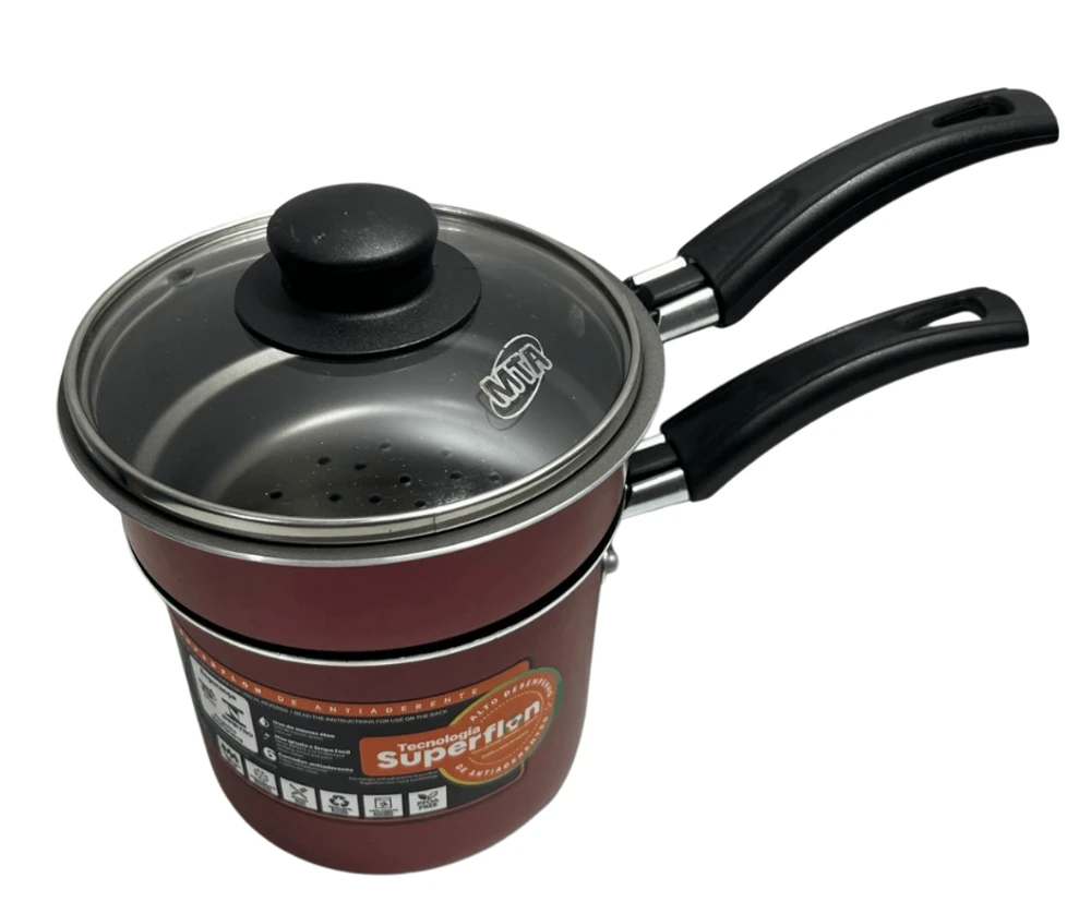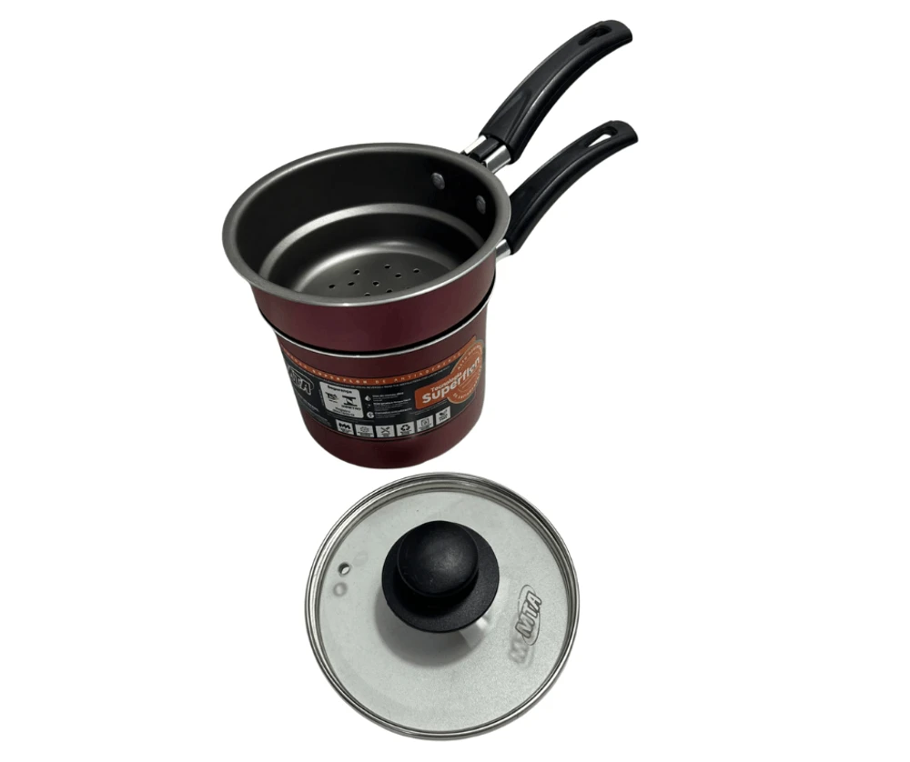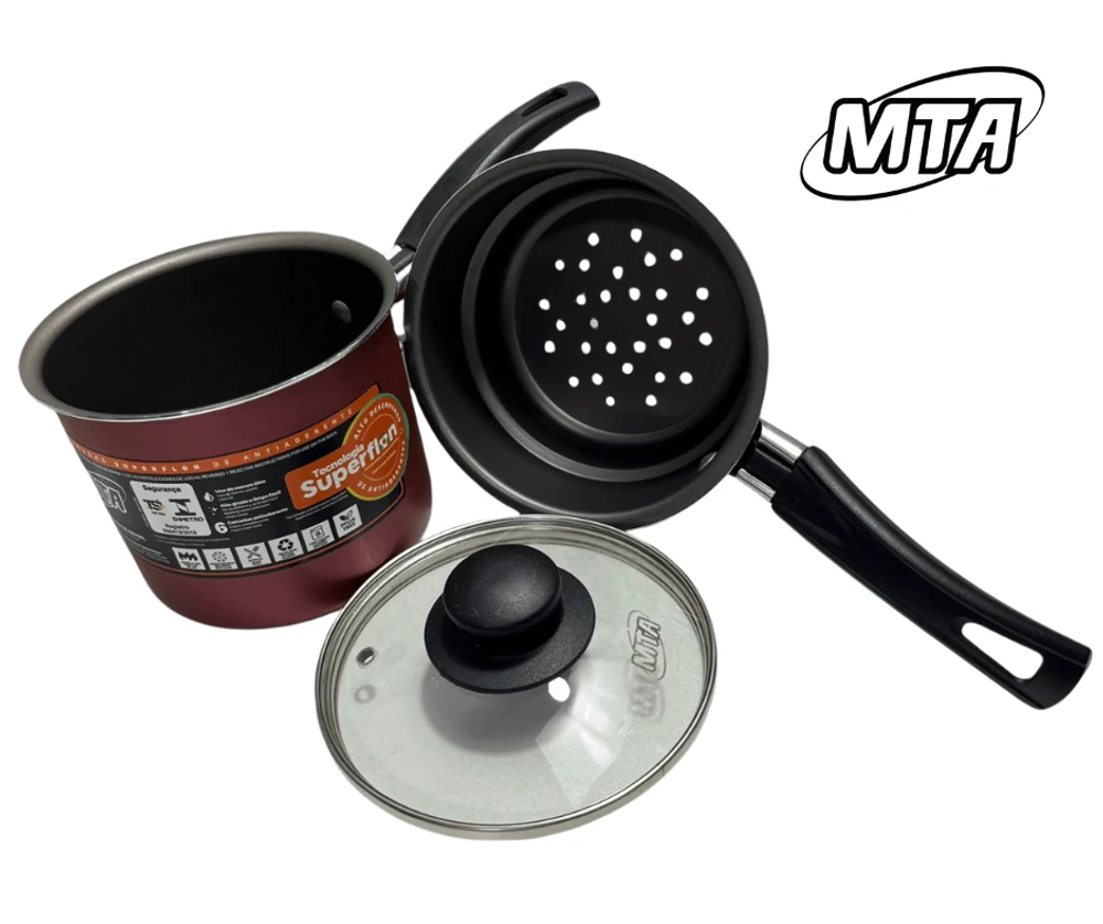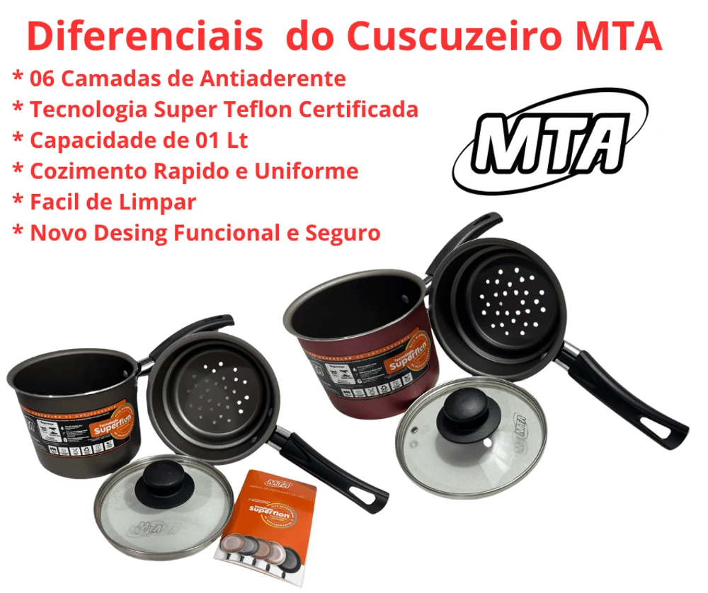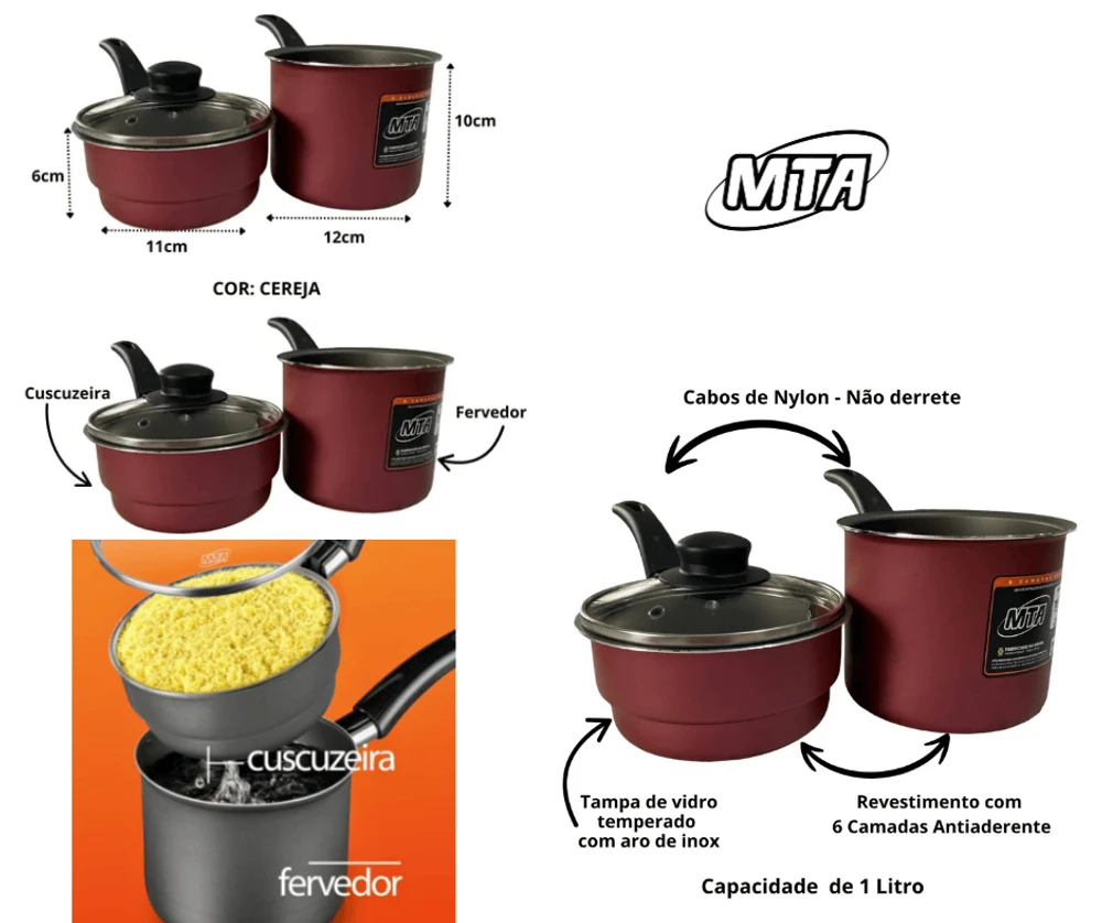 Cuscuzeira Antiaderente 1l Mta Aluminio Tampa Vidro Cereja