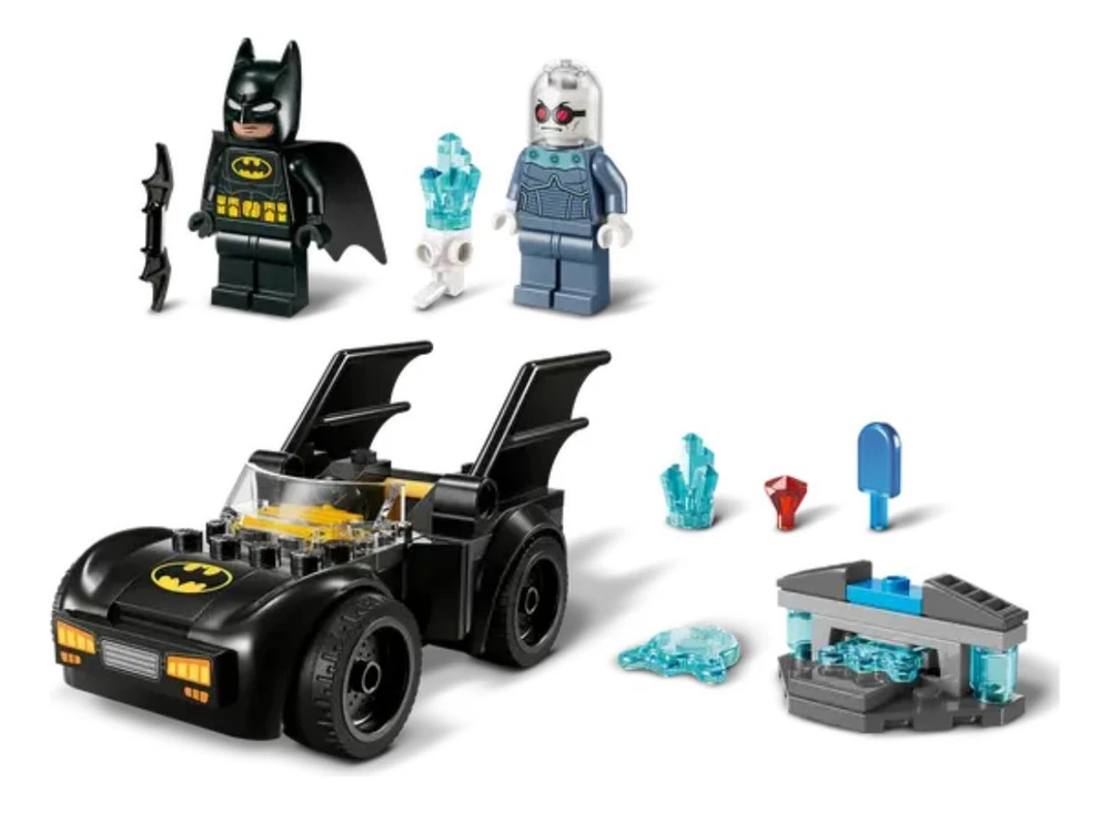 O conjunto inclui minifiguras do Sr. Frio e do Batman, além de um Batmóvel para construir que tem espaço para a minifigura do Batman se sentar dentro. As crianças podem lançar elementos de gelo de um atirador que tem um buraco na parte superior para segurar o blaster de gelo do Sr. Freeze ou seu picolé. 2 diamantes de gelo podem ser anexados a vários lugares do Batmóvel, para que as crianças possam decidir onde o Sr. Frio 'congela' o Batmóvel. Um guia colorido de histórias em imagens está incluído para fornecer instruções intuitivas. Sacos separados de tijolos e um grande Starter Brick tornam a construção rápida e divertida.