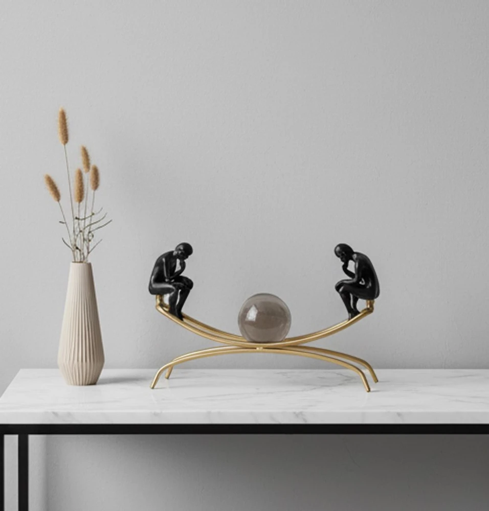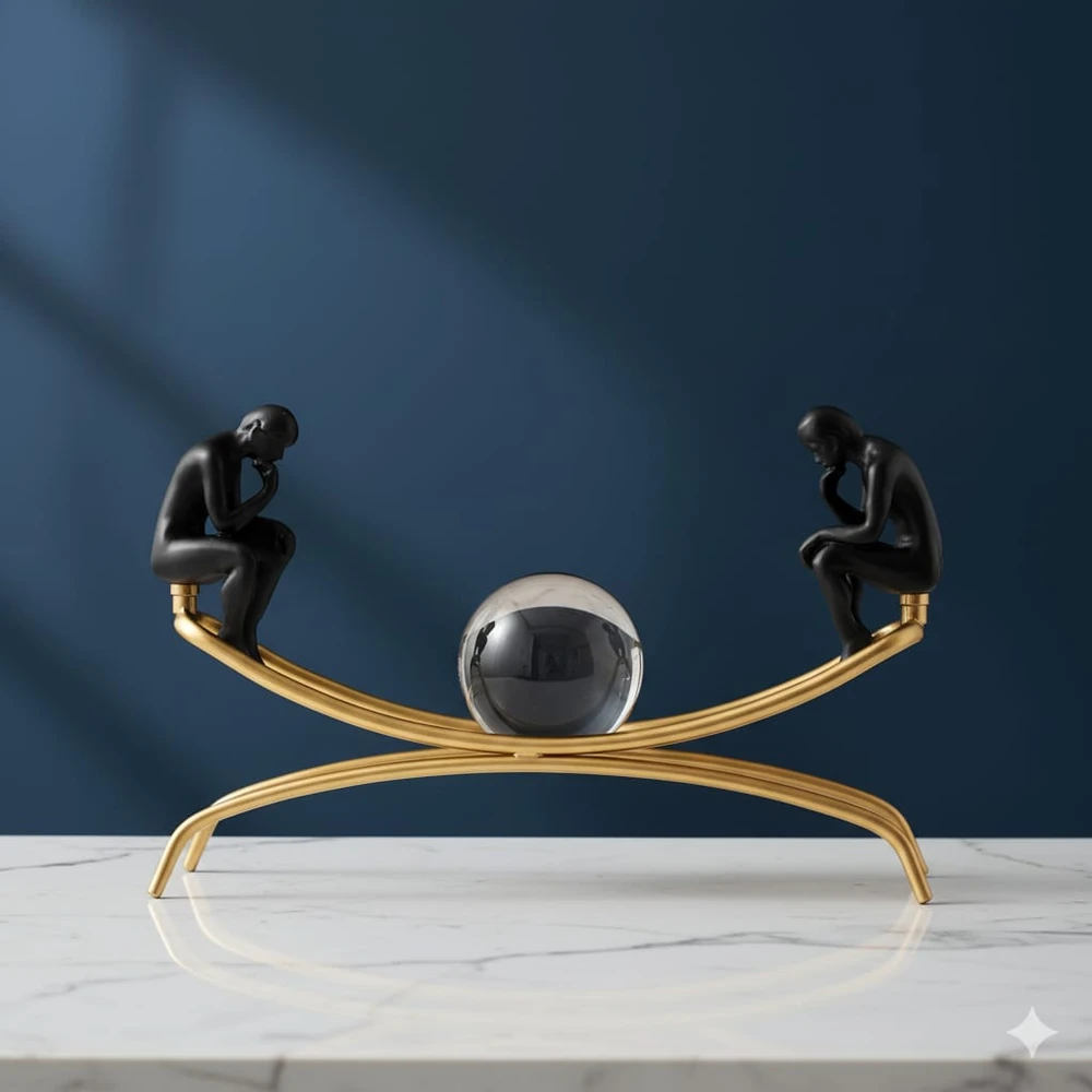 Adicione uma dose de intelectualidade e sofisticação ao seu espaço com a escultura "Pensadores em Equilíbrio". Esta peça de arte não é apenas um objeto de decoração, mas um convite visual à reflexão e à busca pelo balanço ideal na vida.