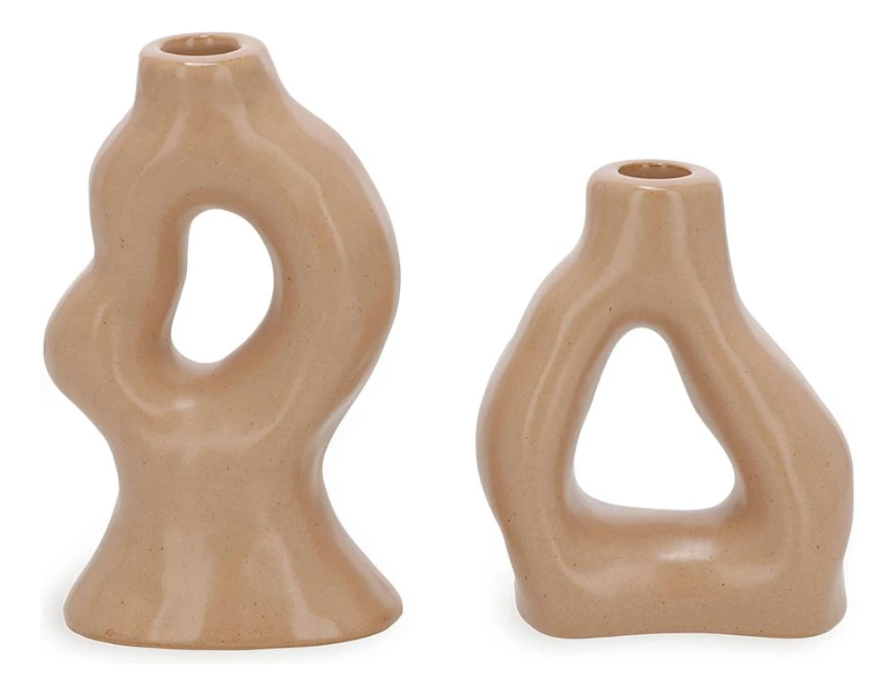 Decore com estilo moderno e único com o Conjunto de Porta-Velas Esculturas em Cerâmica. Este conjunto traz um design orgânico e sofisticado, com curvas elegantes que se destacam como peças de decoração, mesmo quando não estão em uso. Confeccionados em cerâmica de alta qualidade, os porta-velas combinam funcionalidade com um toque artístico.