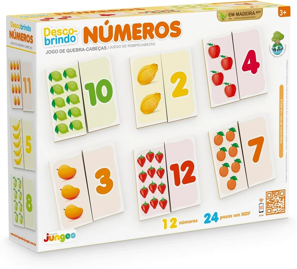 O Descobrindo Números da Junges é um recurso lúdico que ajuda as crianças a iniciarem o contato com a contagem e o reconhecimento dos números de forma leve e divertida. Com peças coloridas e ilustradas, o brinquedo facilita a compreensão dos primeiros conceitos matemáticos, permitindo que os pequenos explorem quantidades, sequências e associações enquanto brincam. A proposta estimula o raciocínio lógico, a coordenação motora e a atenção, tornando o aprendizado mais natural e prazeroso.