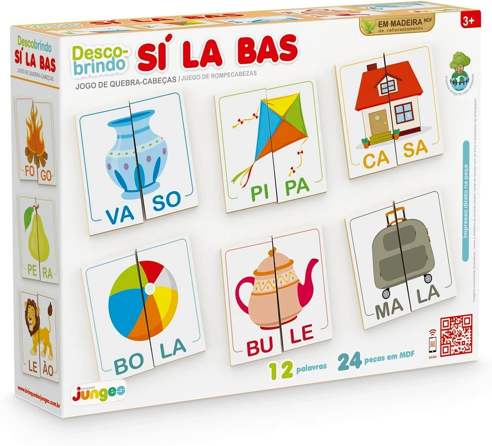 O Jogo Descobrindo Sílabas da Junges transforma o aprendizado em uma brincadeira divertida e envolvente. Produzido em MDF de reflorestamento com impressão direta na madeira, o jogo possui peças resistentes e acabamento de alta qualidade. Cada conjunto permite formar cenas e palavras de duas sílabas, estimulando o raciocínio lógico, a concentração e o reconhecimento das sílabas de forma natural e lúdica. Ideal para o processo de alfabetização, ajuda as crianças a associarem imagens e sons, tornando o aprendizado mais prazeroso.