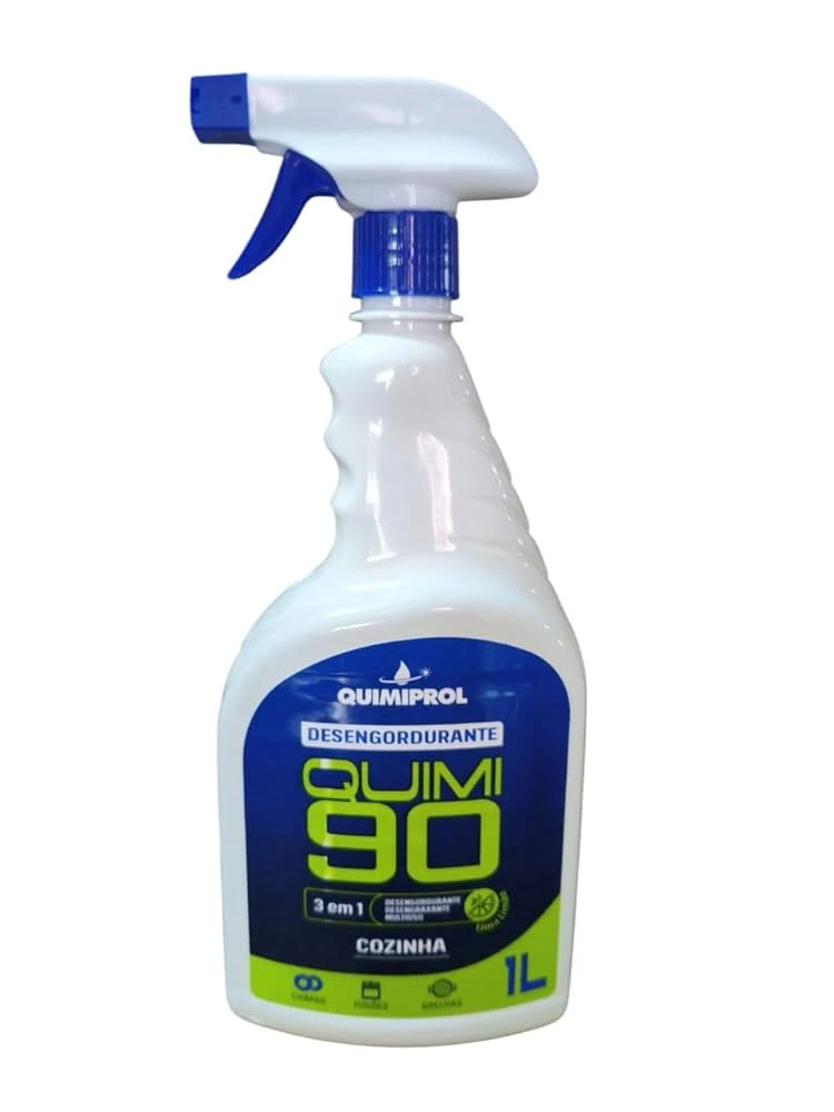 Desengordurante Quimi 90 1L - Quimiprol: eficiência comprovada para limpeza pesada na cozinha. Desenvolvido especialmente para eliminar gordura, resíduos e sujeiras difíceis rapidamente, seu poder 3 em 1 desengordura, higieniza e perfuma ambientes, proporcionando uma limpeza profunda com praticidade e segurança. Ideal para uso em fogões, bancadas, coifas e superfícies resistentes, garante um ambiente mais limpo e saudável. Sua fórmula concentrada rende mais, otimizando seu uso diário. Produto indispensável para quem busca qualidade profissional na limpeza doméstica ou comercial.