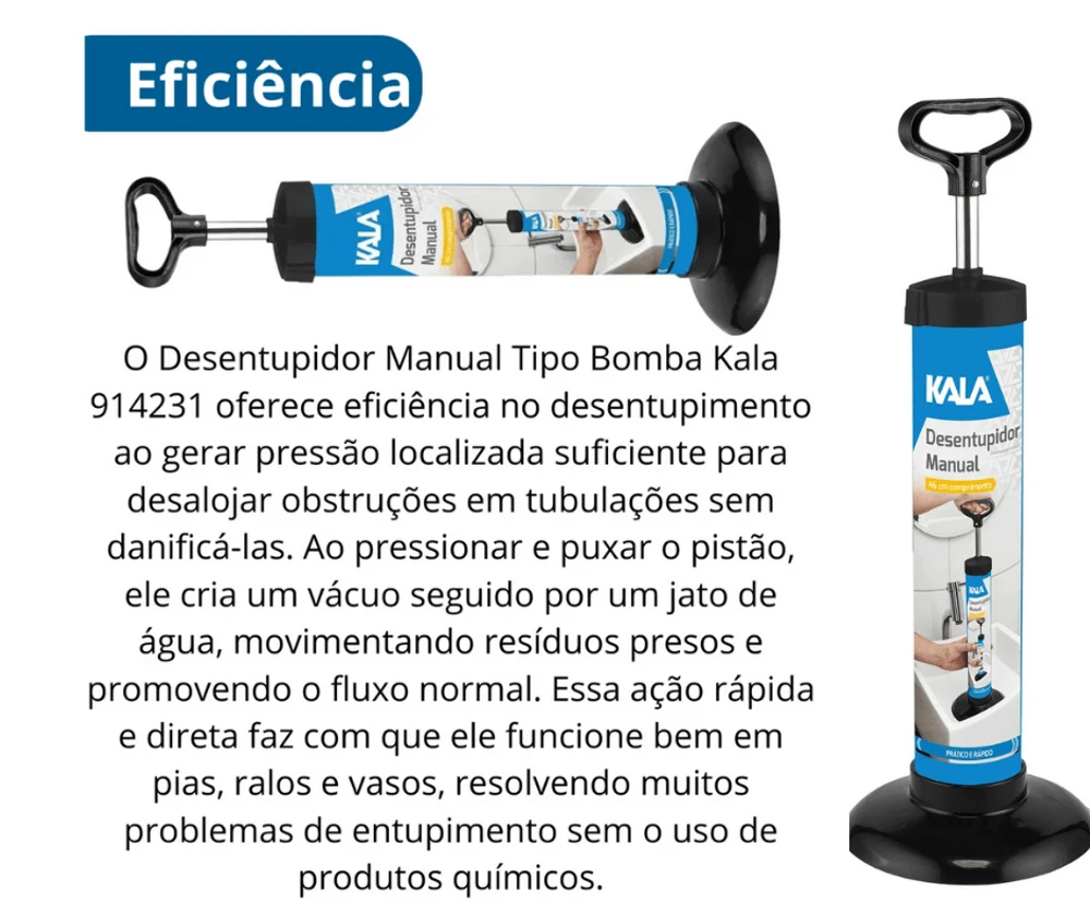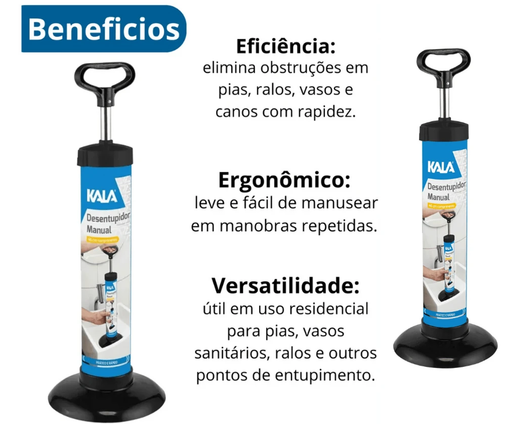 Benefícios do Desentupidor Manual Kala Tipo Bomba Kala: