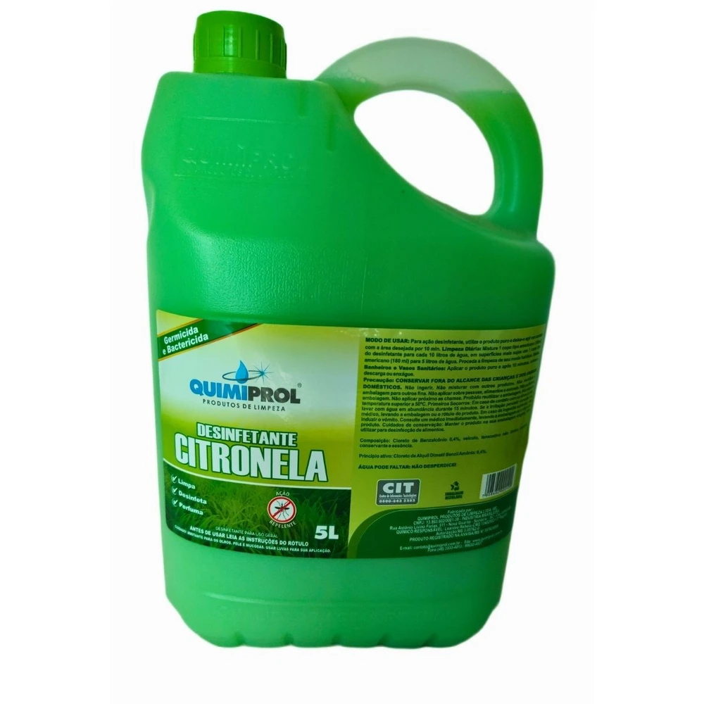 O Desinfetante Citronela Quimiprol une limpeza profunda, ação germicida e bactericida com o benefício repelente da citronela, garantindo ambientes higienizados e livres de insetos. Ideal para uso em residências, comércios e áreas que demandam proteção contra mosquitos.