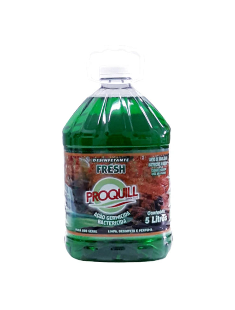 Desinfetante Fresh 5L - Proquill: limpeza e proteção para sua casa ou ambiente comercial. Com ação germicida e bactericida comprovada, este desinfetante elimina até 99,9% dos germes, garantindo superfícies mais seguras e higienizadas. Sua fórmula eficiente é ideal para uso geral, proporcionando limpeza profunda e fragrância agradável que perfuma o ambiente, promovendo sensação de frescor duradouro.