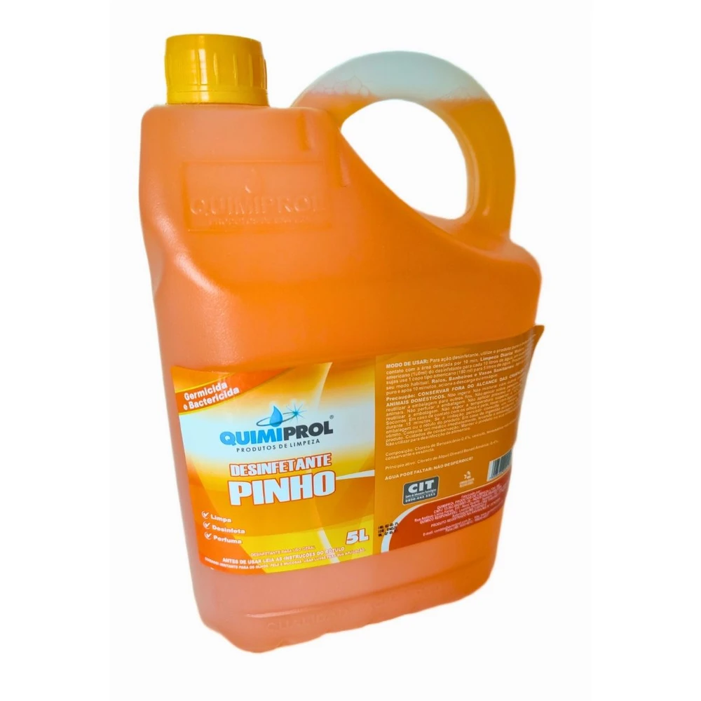 Desinfetante Pinho 5L Quimiprol: limpeza e proteção eficiente para seu ambiente. Formulado com cloreto de benzalcônio, este desinfetante atua como germicida e bactericida, eliminando 99,9% dos microrganismos. Ideal para uso em áreas residenciais e comerciais, garante superfícies higienizadas, perfumadas e seguras para sua família ou clientes. Sua fragrância caracteristicamente fresca de pinho deixa o ambiente agradável e convidativo.