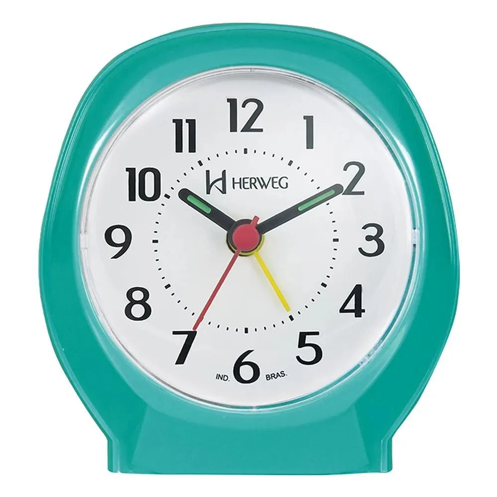 Características técnicasMecanismo step (tic-tac)Alarme sonoroPonteiros com Massa LuminosaMostrador com todos os númerosUsa pilha AABase: Plástico InjetadoCor da Base: Verde MentaCor do Mostrador: BrancoDimensões: 8,6A X 8,2L X 4,6E cmGarantia de 1 ano